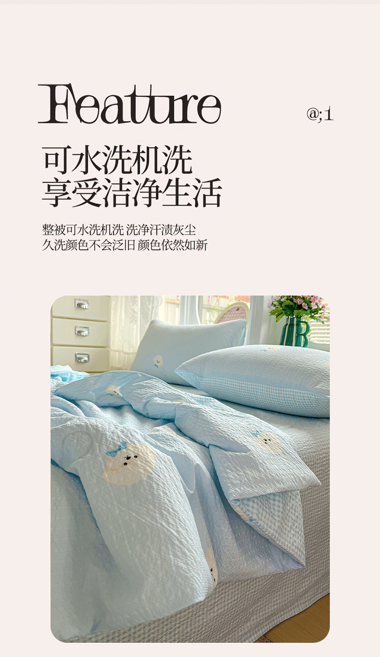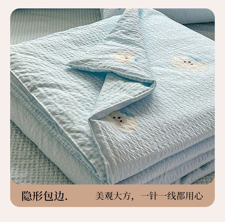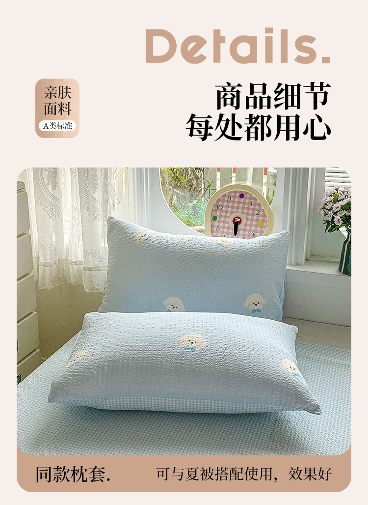 (总)小桃姐家纺 2026新款泡芙棉双层纱夏被空调被四件套小清新泡泡纱夏被卡通夏凉被空调被,苹果星星,安娜,彩虹木马,初晴,蛋糕狗,粉色星星,花町,花仙兔,蓝格Kitty,蓝条纹,绿茵兔,奶油kitty,拼豆喵,浅春,软萌小狗,盛夏,童话,晚风,线条星星,幸运kitty,修狗狗,知晓,紫韵