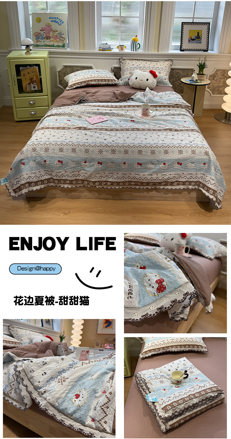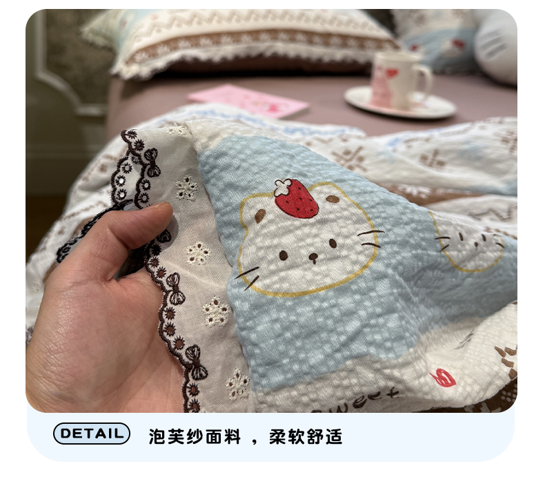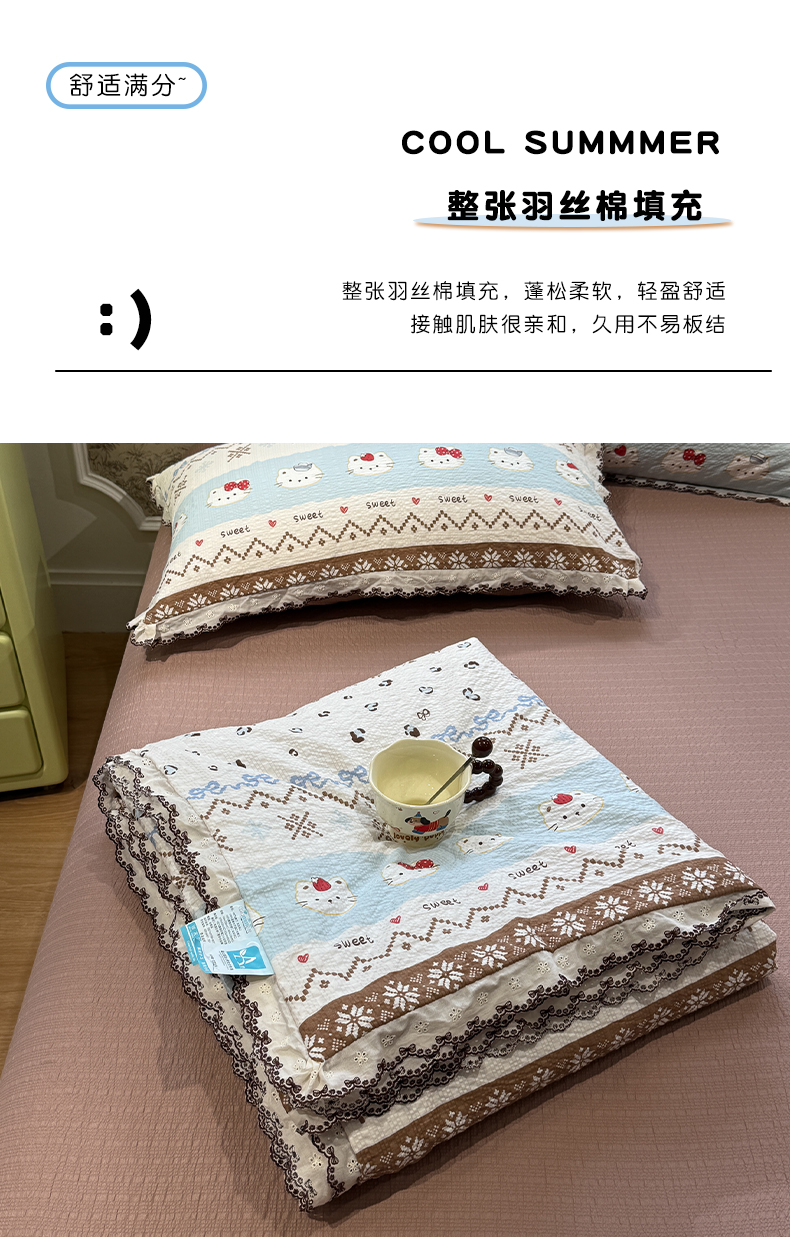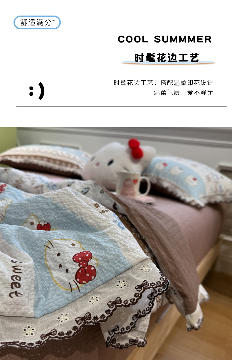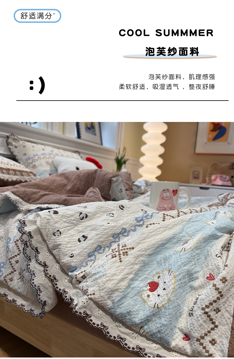 商品名称:水墨江南 2026新款泡芙纱全棉花边夏被四件套 花边夏被-甜甜猫