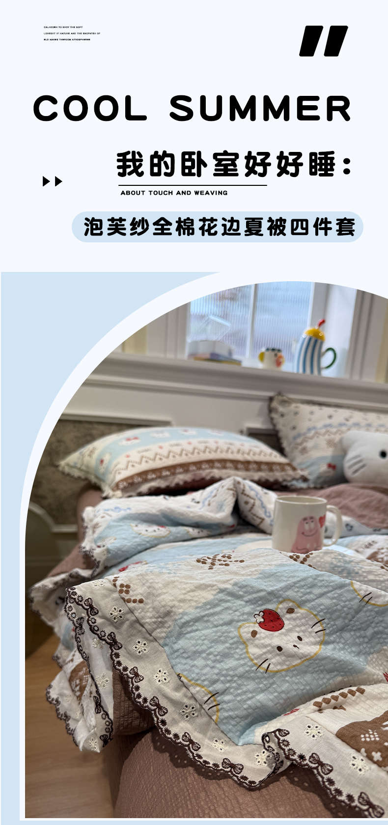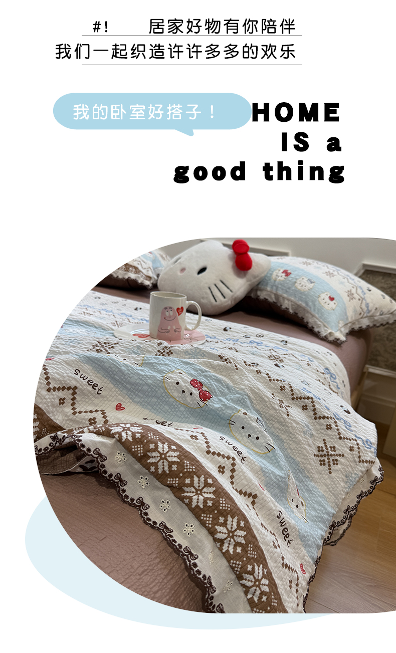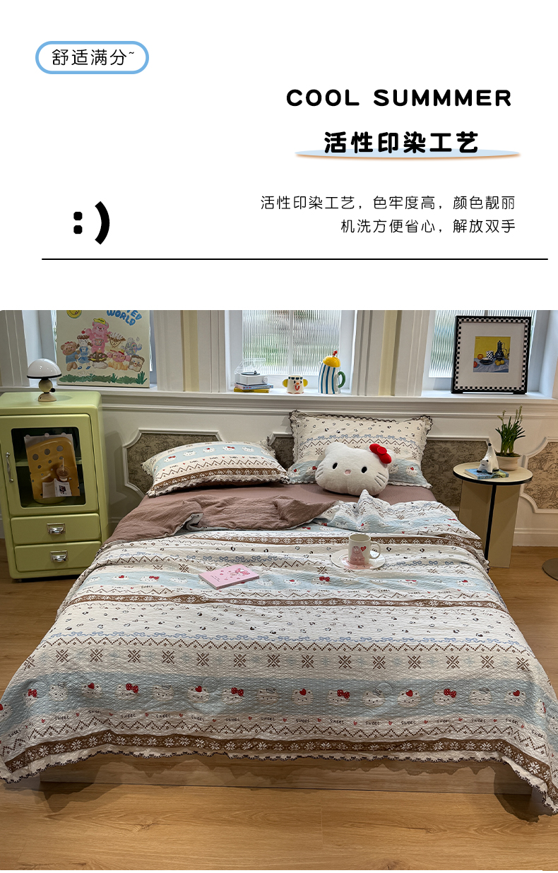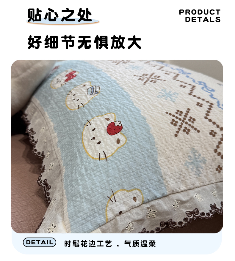 商品名称:水墨江南 2026新款泡芙纱全棉花边夏被四件套 花边夏被-甜甜猫