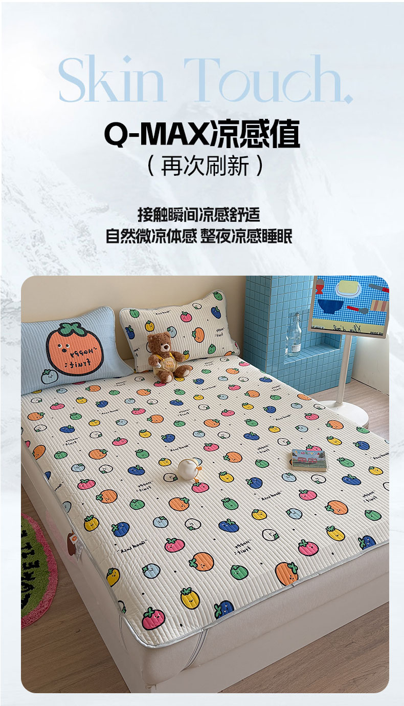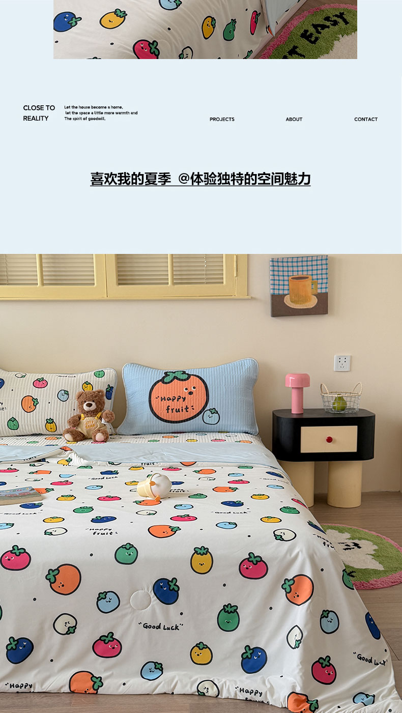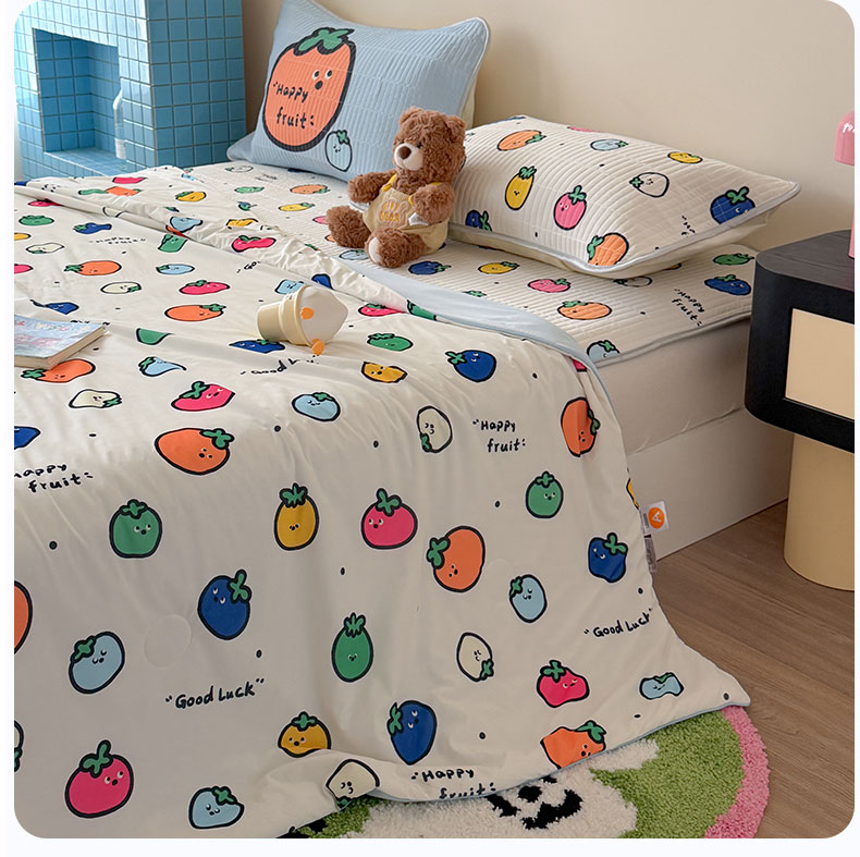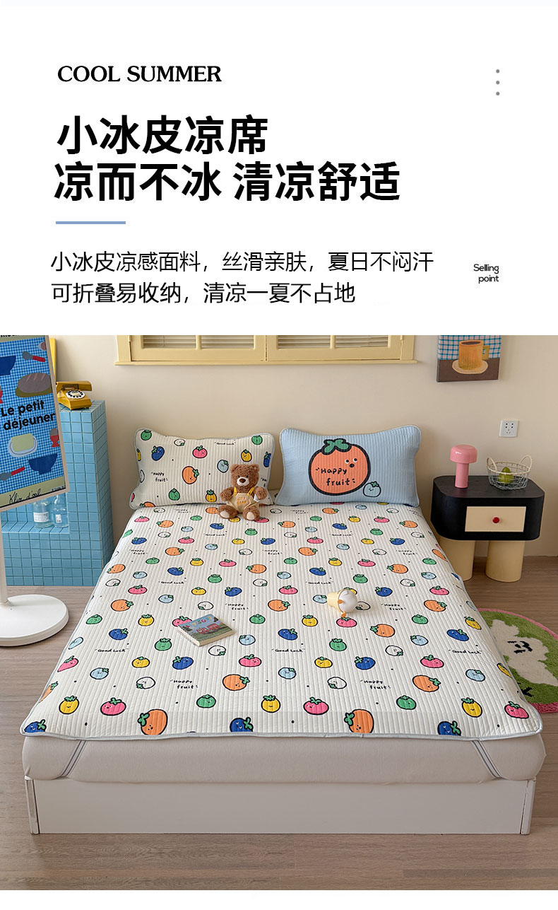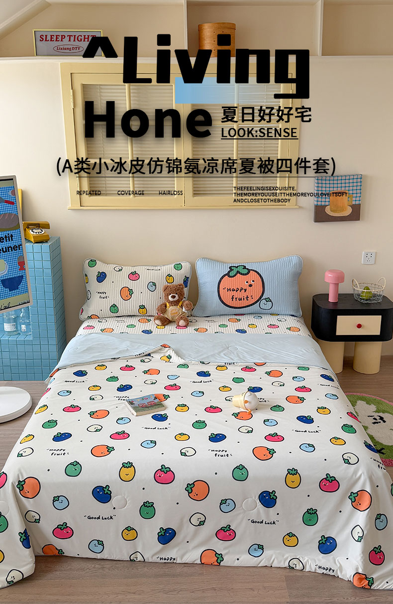 • 91家纺网 家纺一手货源 找家纺 桃子家居 2026新款A类小清新卡通数码印花混搭小冰皮夏被夏凉被空调被席子凉席四件套 小冰皮-夏日果味