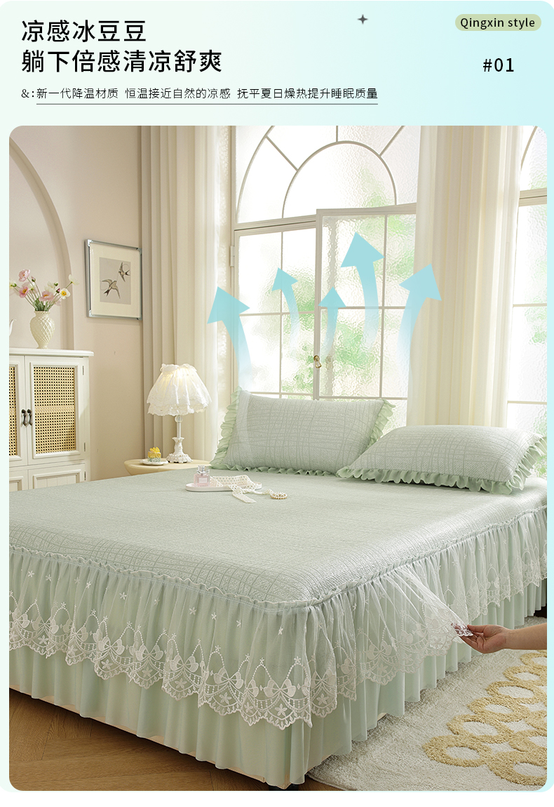 (总)共鸣沙发垫 2026新款冰豆豆素雅床裙系列,素雅蓝色,素雅粉色,素雅灰色,素雅绿色,素雅米黄