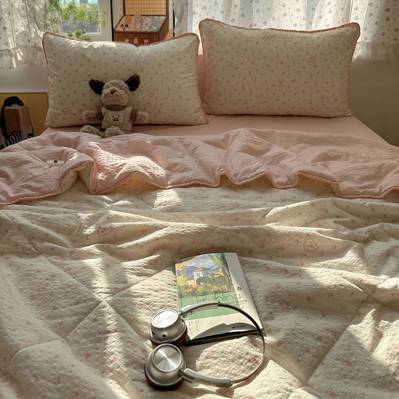 (总)禾沐 2026新款三角针泡芙纱夏被四件套-实拍图,波点,粉玫瑰,花镜人偶,可可小猫条,兰爱心,蕾丝花匣,栗色木马纹,描线猫,暖橘枝,芊泥花束,浅川纹,柔诗意,甜桃心,甜心木马卷,小猫粉,星芒凯蒂,星星人,只闻花香,紫雾花蝶