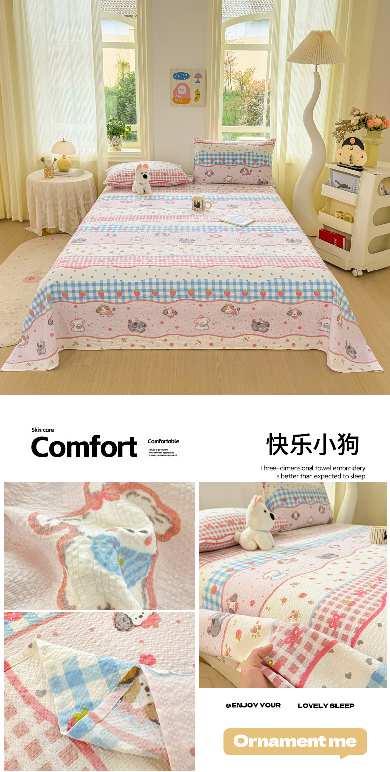 当前位置: 91家纺网 > 商品网购 > 床上用品 > 床单 > 梵朴 2026新款A类泡芙纱云感邹邹纱双层纱单床单 快乐小狗