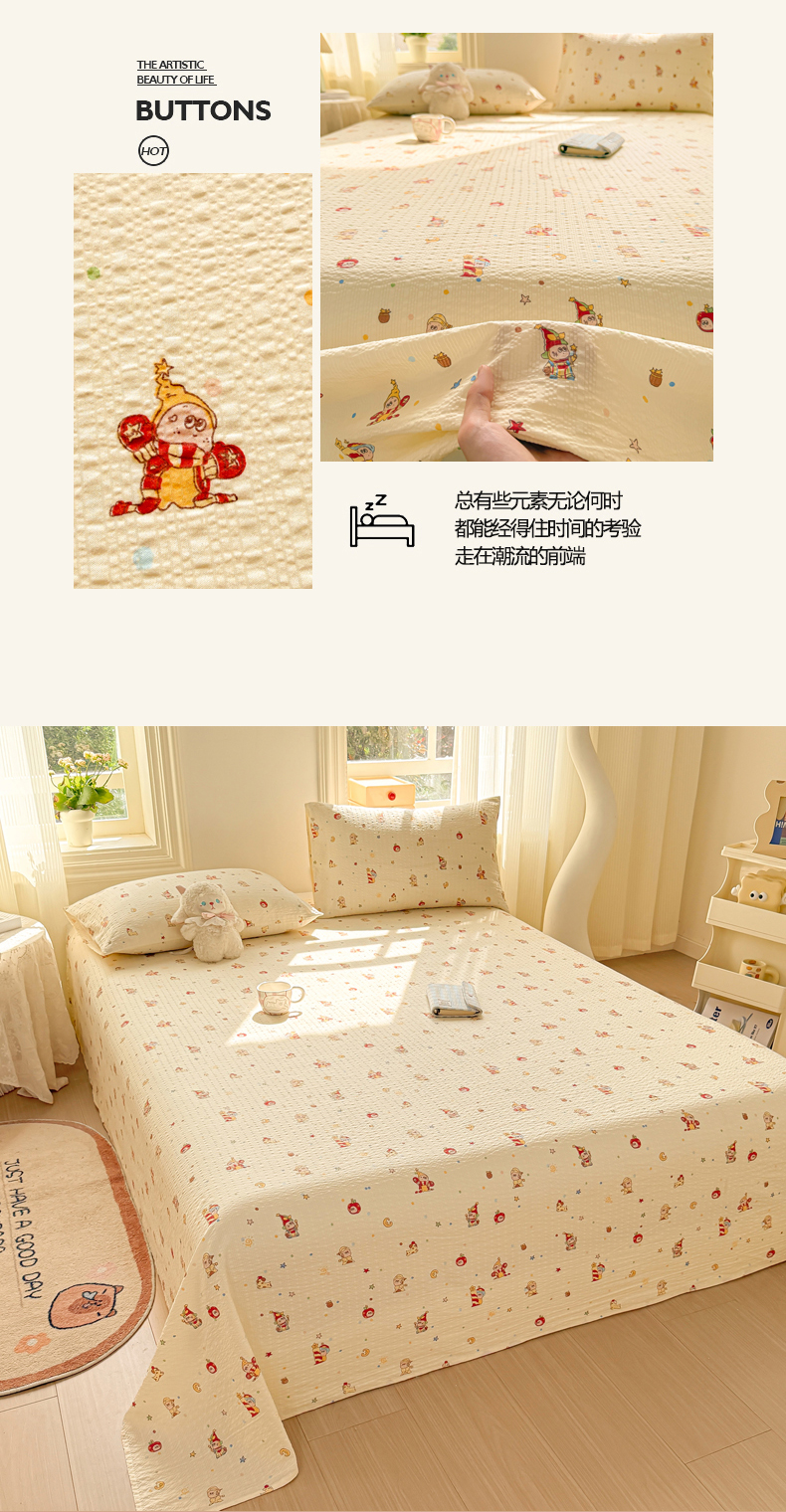 当前位置: 91家纺网 > 商品网购 > 床上用品 > 床单 > 梵朴 2026新款A类泡芙纱云感邹邹纱双层纱单床单 星星玩偶黄