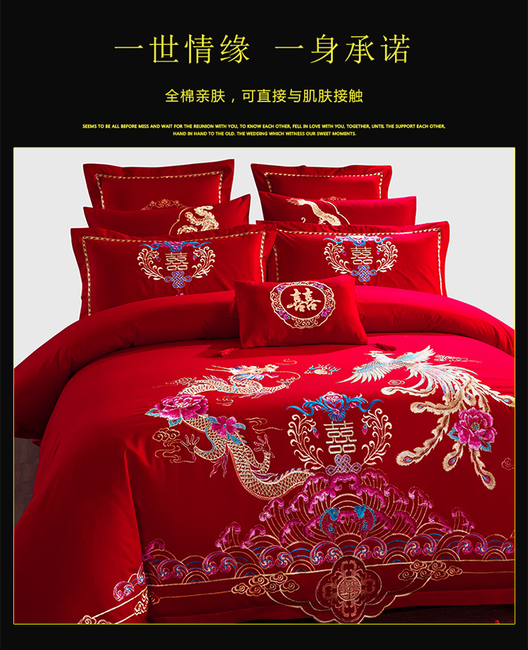 (总)慕她 202560S长绒棉刺绣婚庆四件套-龙凤良缘,龙凤良缘