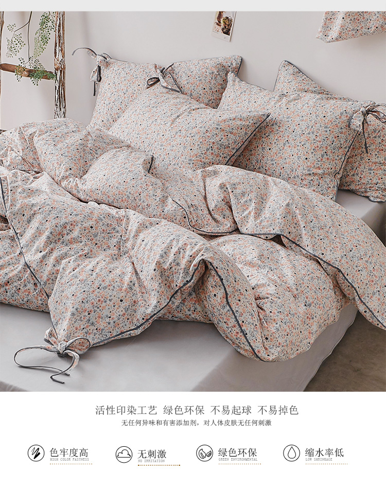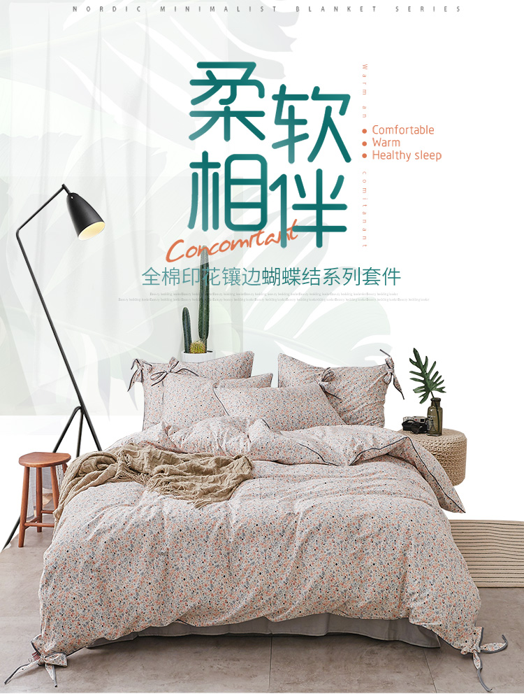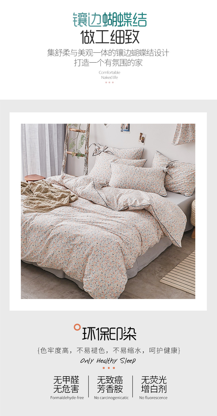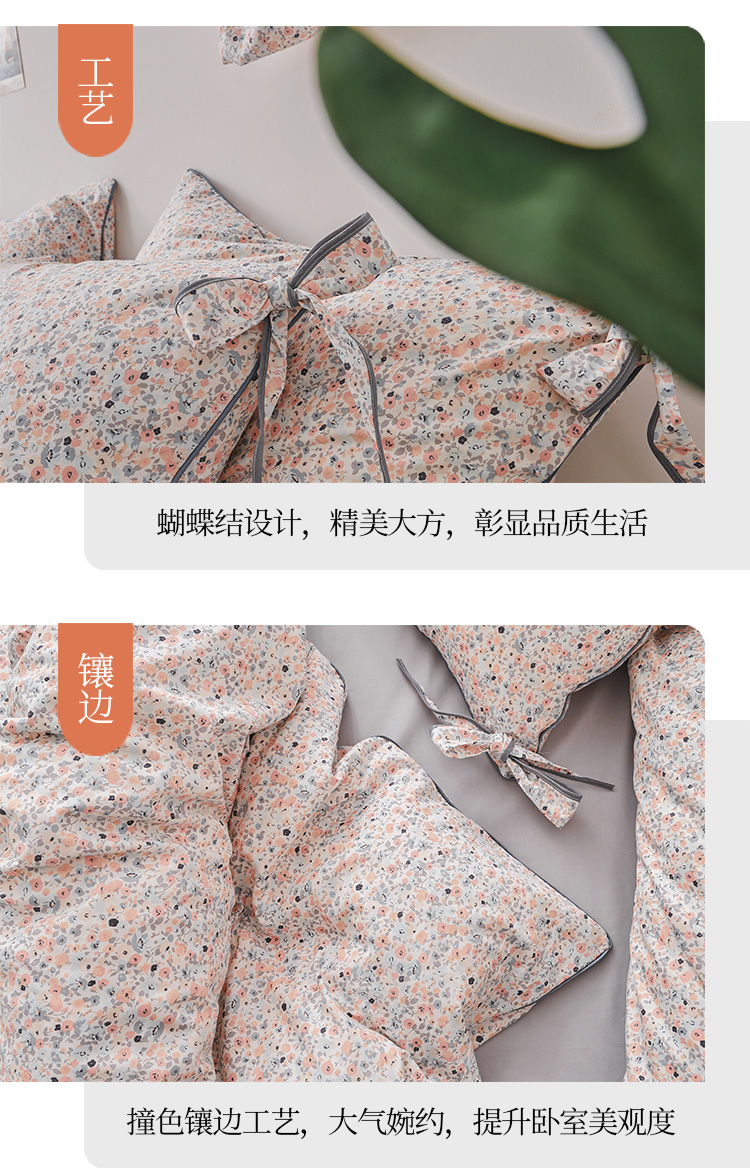 商品名称:棉眠 2019春夏新款全棉镶边蝴蝶结四件套 床单款 繁花