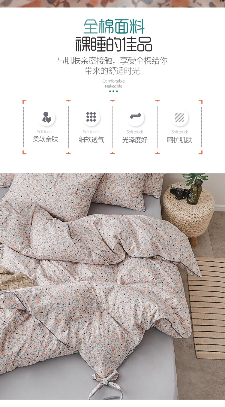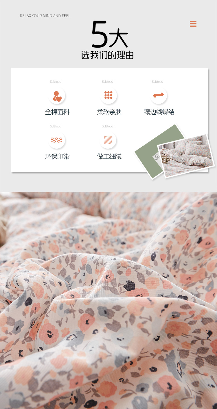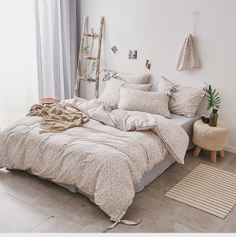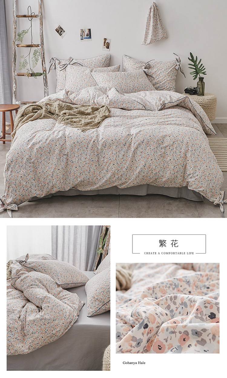 商品名称:棉眠 2019春夏新款全棉镶边蝴蝶结四件套 床单款 繁花