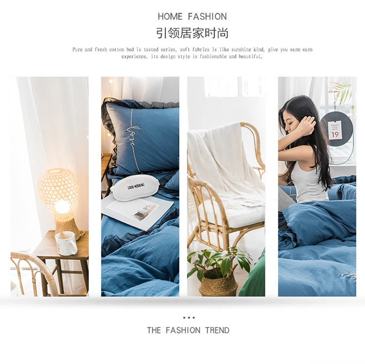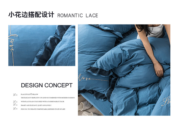 商品名称:AB家纺 2019新款水洗棉蕾丝边四件套 宝蓝