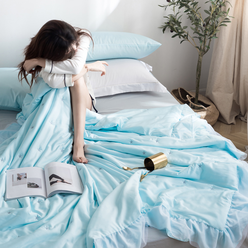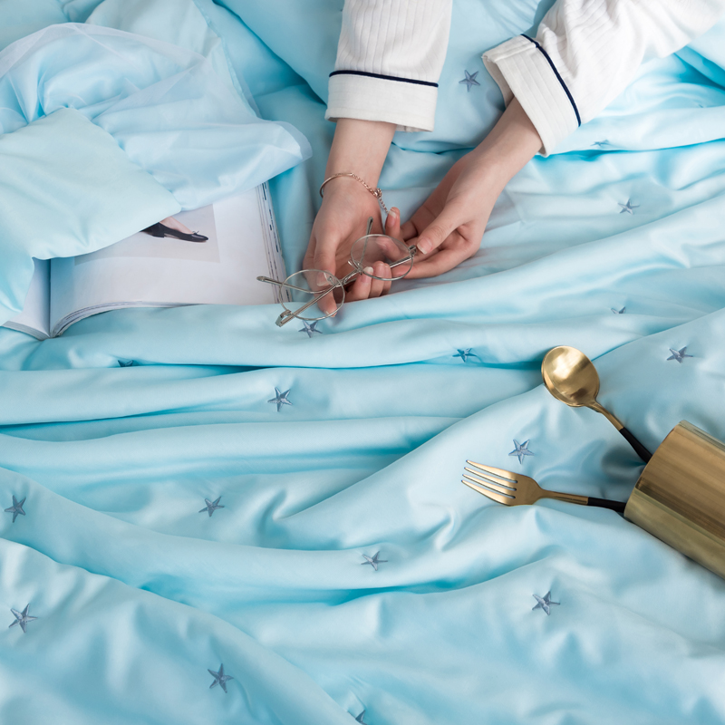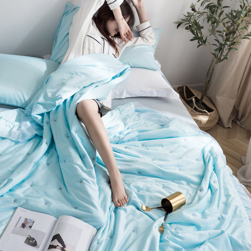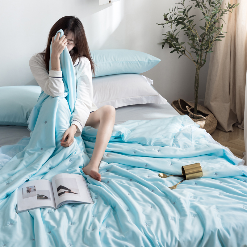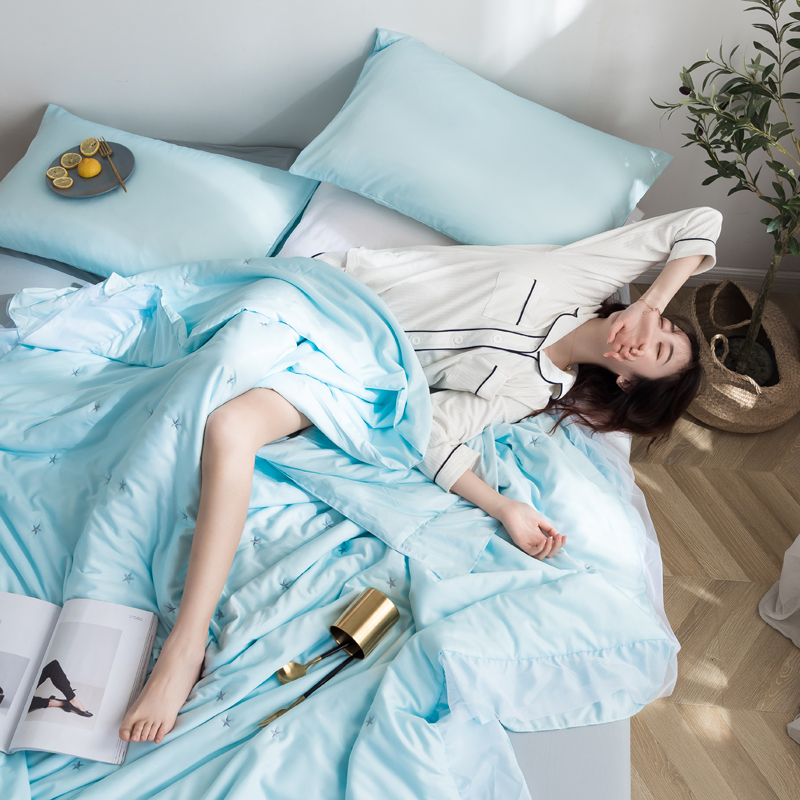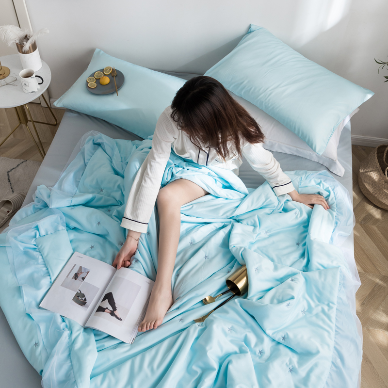 漫调 独家定制ins风满天星莫代尔天丝夏被刺绣夏被 氧气蓝