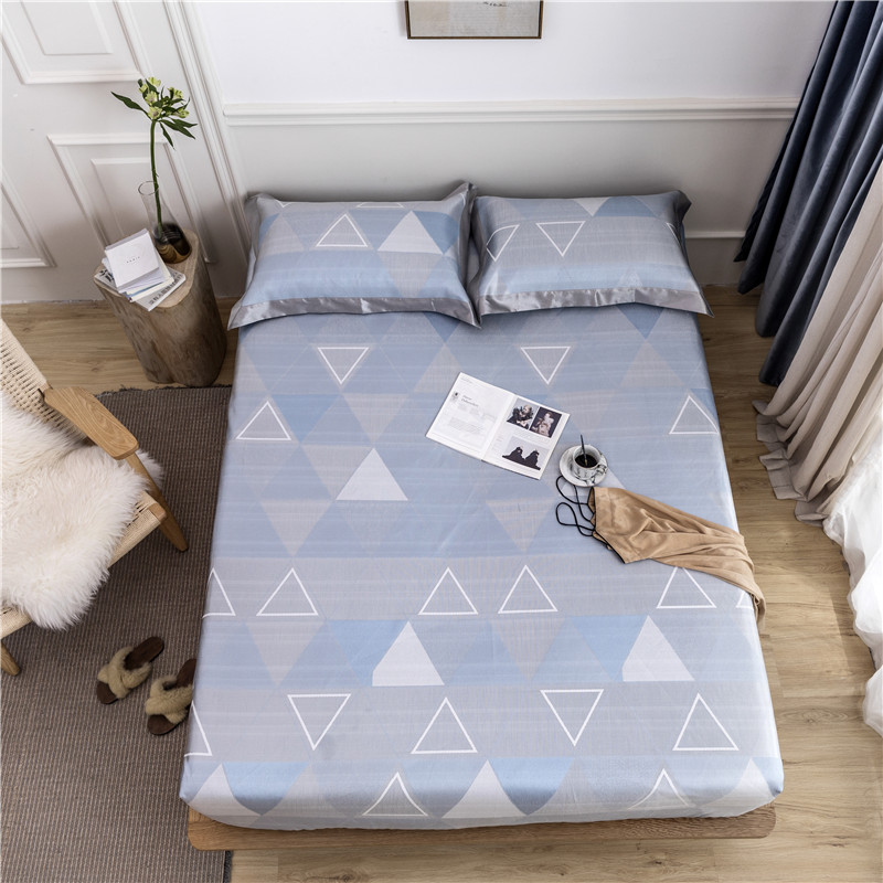时年家纺 2019新款凉席冰丝席冰露丝床笠款 渐变三角-蓝