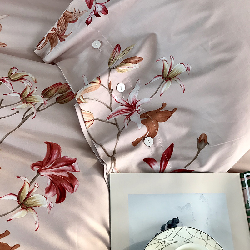 (总)优然居家纺 2025新款全棉磨毛法式小香风格纹贴布绣法式老钱风四件套-山茶花,山茶花-灰,山茶花-粉
