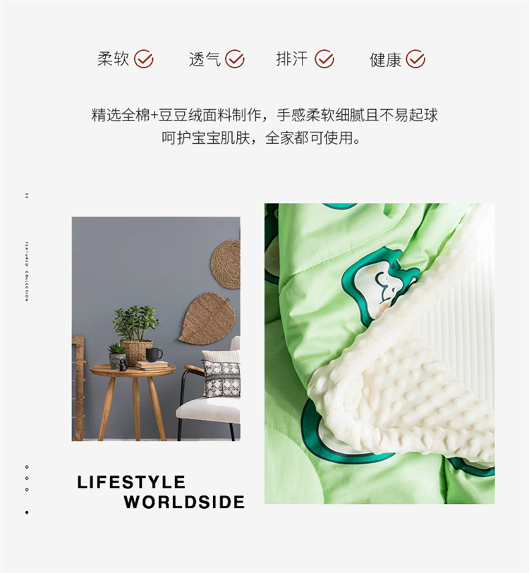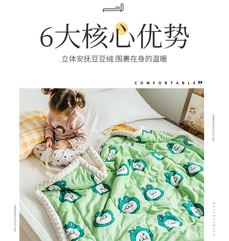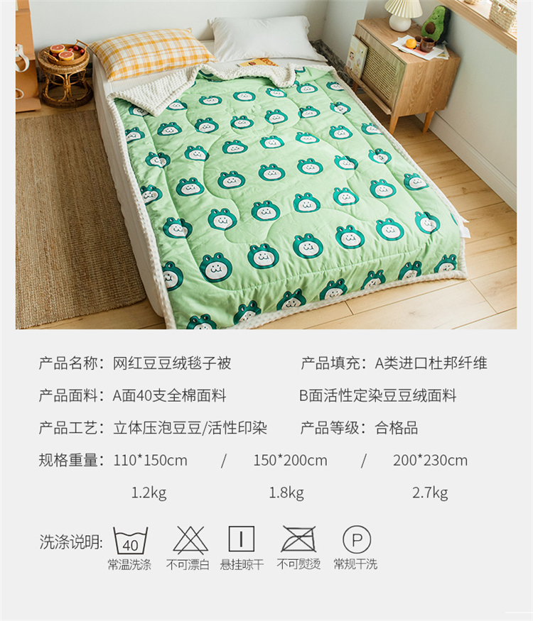 商品名称:北纬27度 2019新款ins风安抚豆豆绒夹棉毯 呱呱蛙