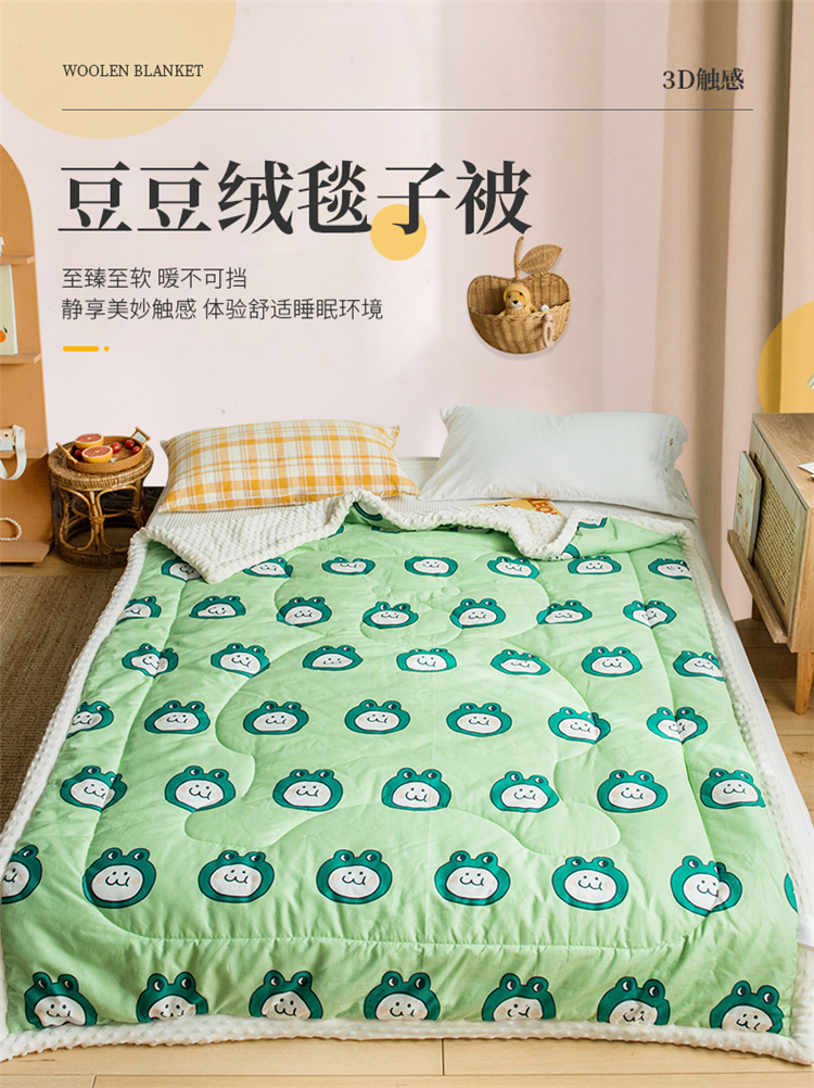 北纬27度 2019新款ins风安抚豆豆绒夹棉毯 呱呱蛙