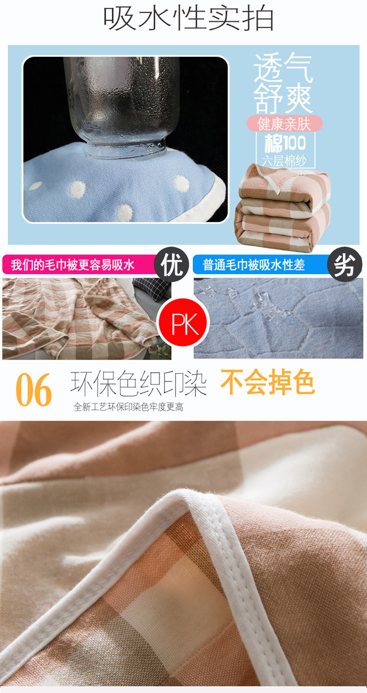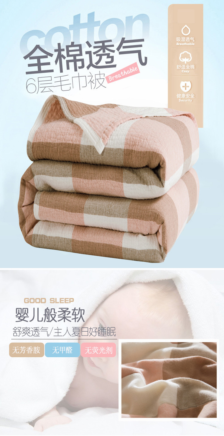 商品名称:朴尔家纺 六层全棉纱布毛巾被 日式大格-粉