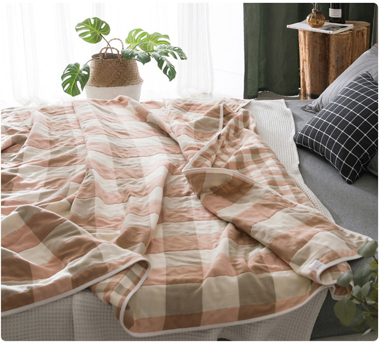 朴尔家纺 六层全棉纱布毛巾被 日式大格-粉