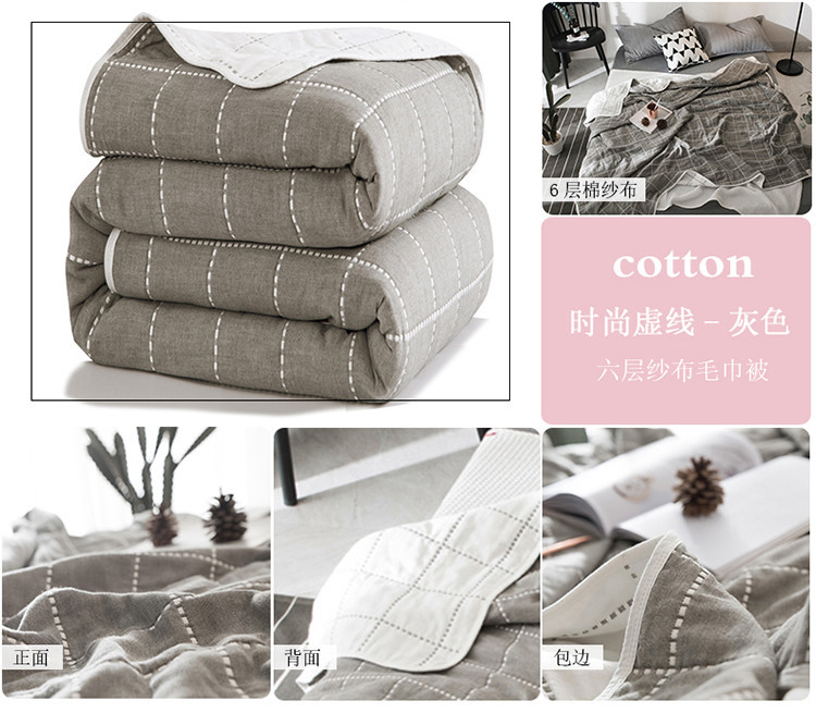 商品名称:朴尔家纺 六层全棉纱布毛巾被 时尚虚线-灰色