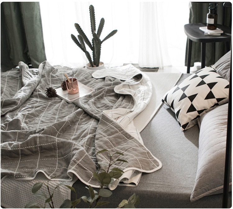朴尔家纺 六层全棉纱布毛巾被 时尚虚线-灰色