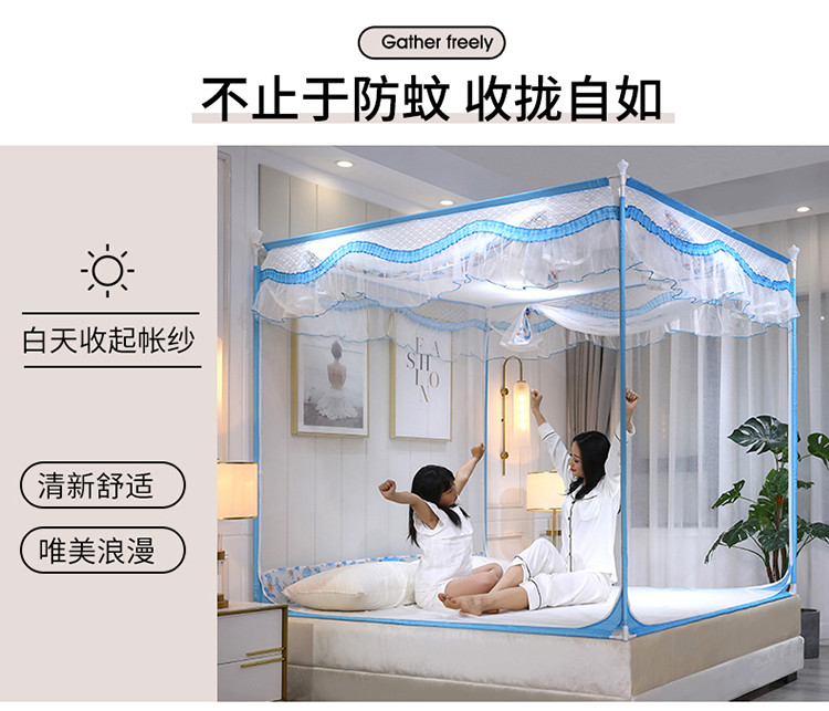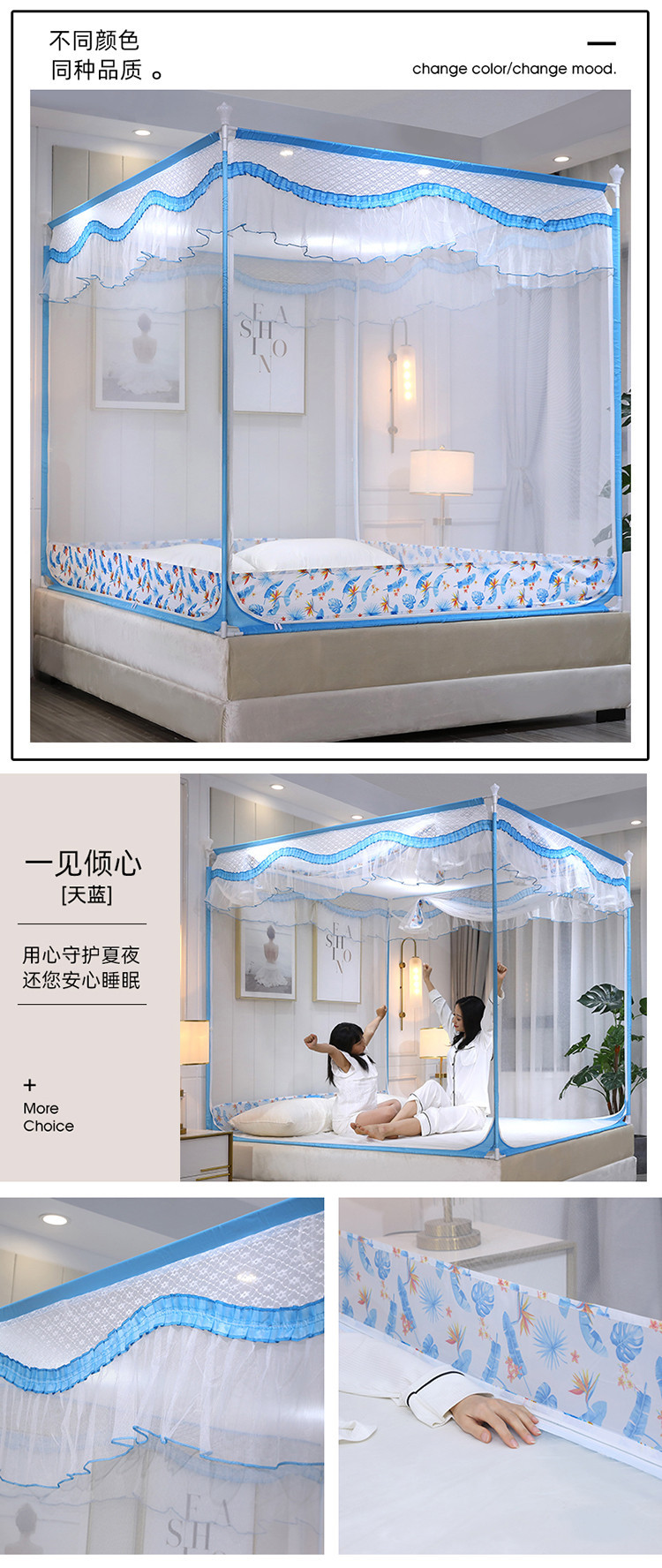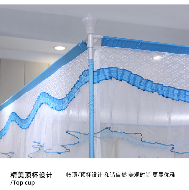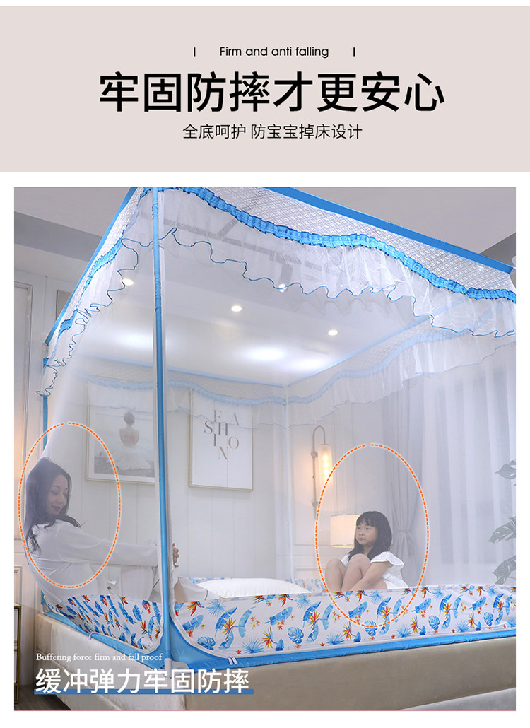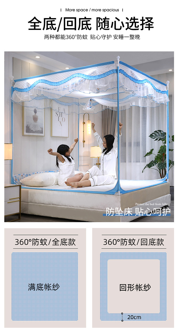 (总)伊而梦蚊帐 2025新款三开门刺绣花边T型A类母婴级加高坐床款蚊帐升级版围栏款防摔支架903款全底款床笠款,903 海岛蓝,903 月影灰,903 玫瑰粉,903 奶油黄,903 优雅绿