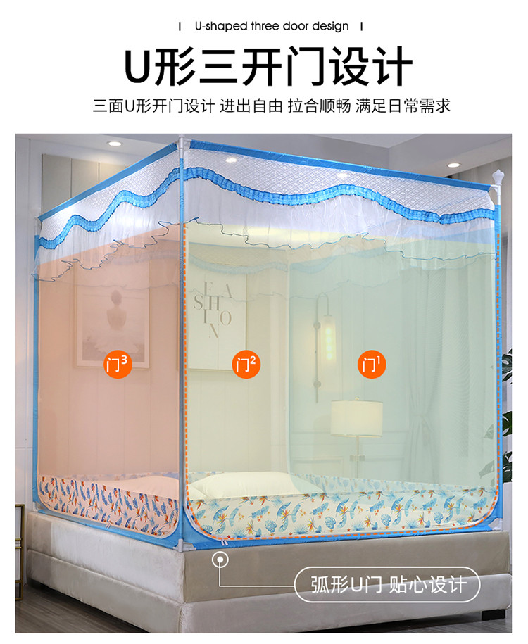 (总)伊而梦蚊帐 2025新款三开门刺绣花边U型A类母婴级加高坐床蚊帐升级版围栏款防摔支架908款,908 碧水蓝,908 冷月灰,908 嫩芽绿,908 秋桂黄,908 霞光粉,908 珍珠白