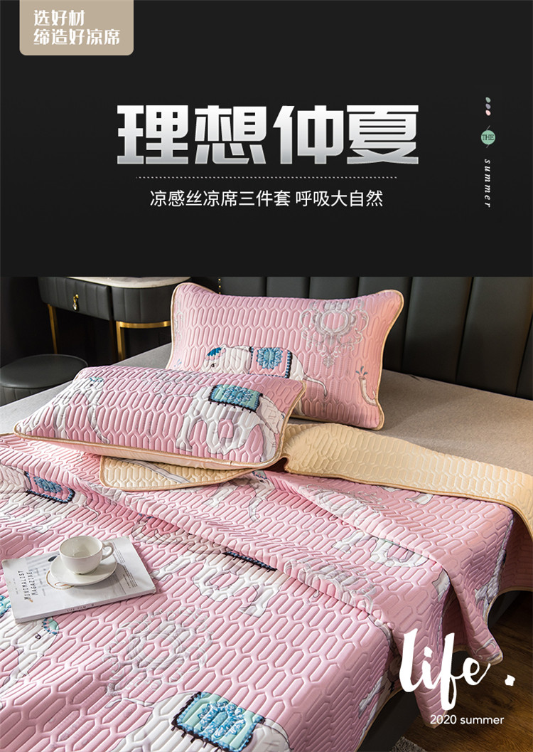 当前位置: 91家纺网 > 商品网购 > 床上用品 > 凉席 > 凉席套件 > 威克凯丽 2021新款凉感丝印花乳胶凉席 吉象-粉