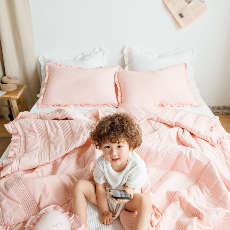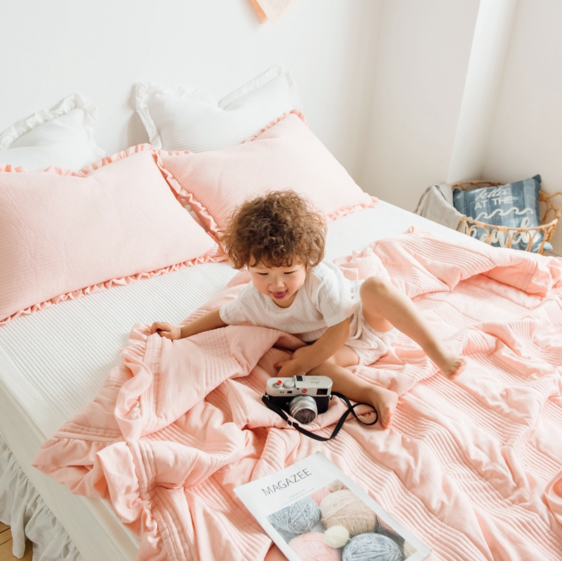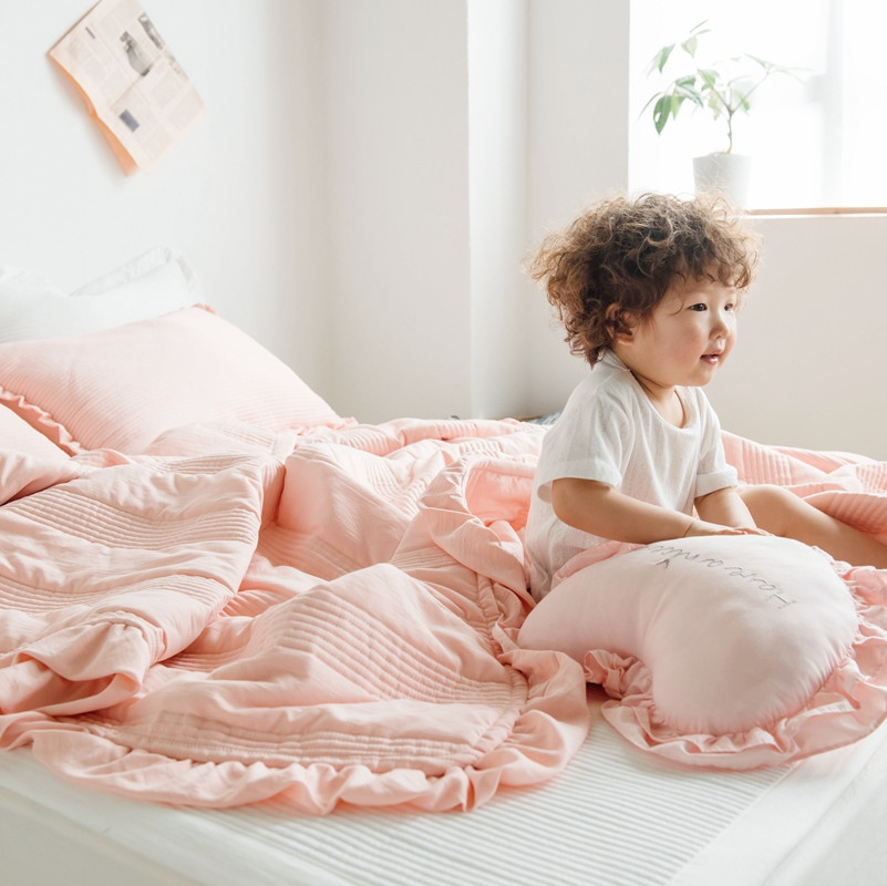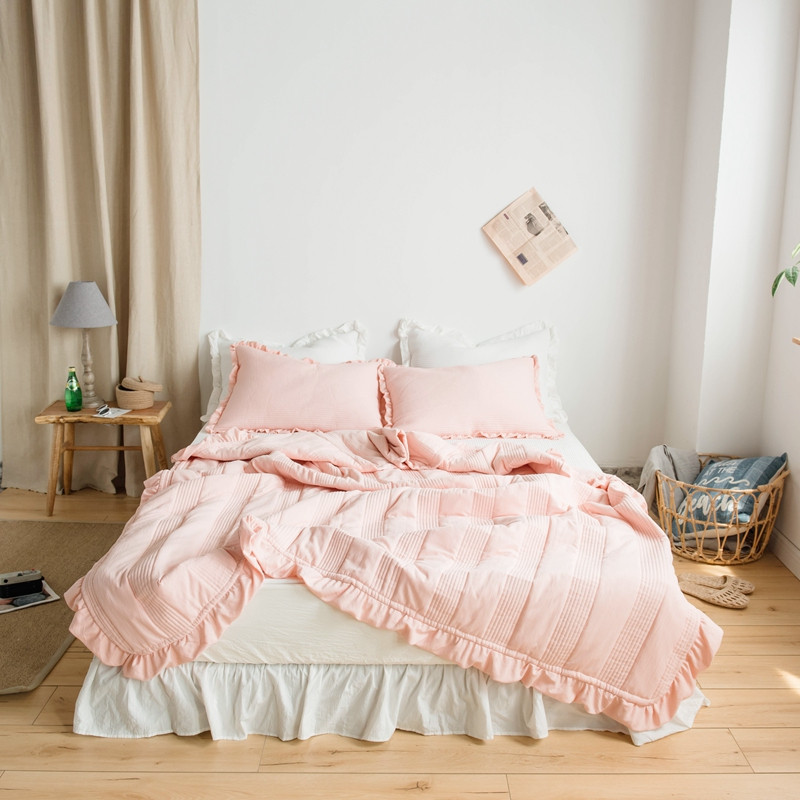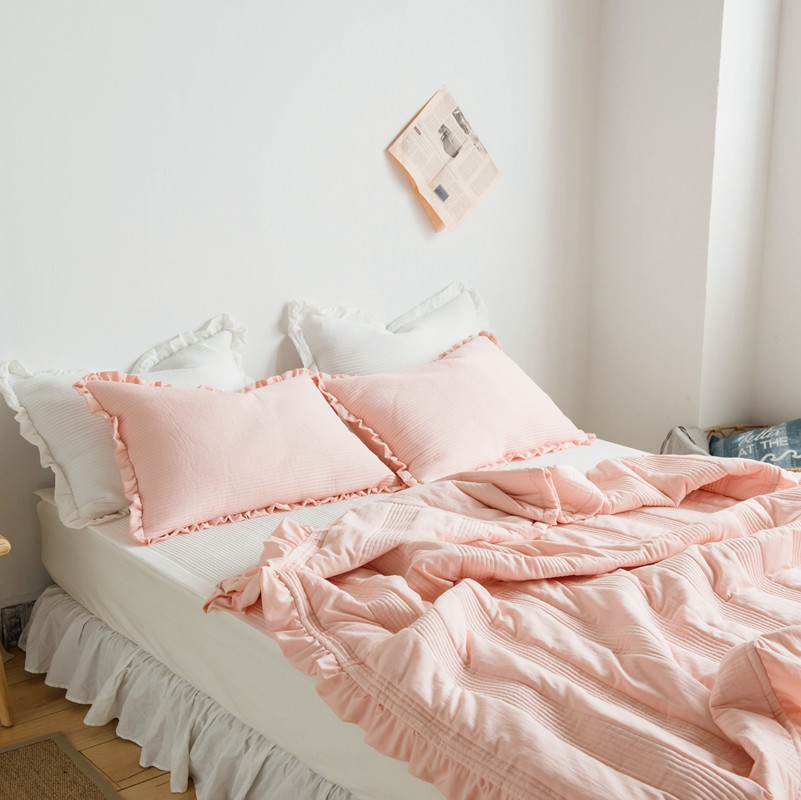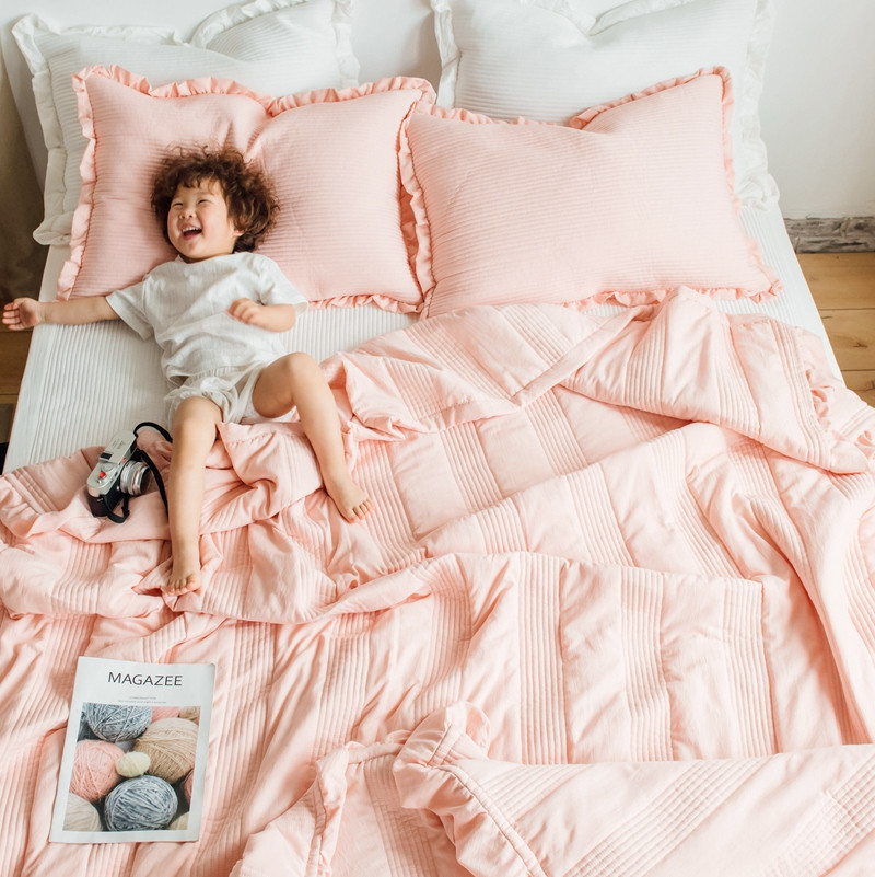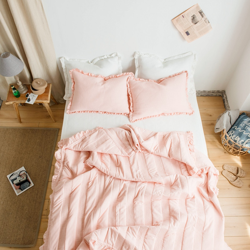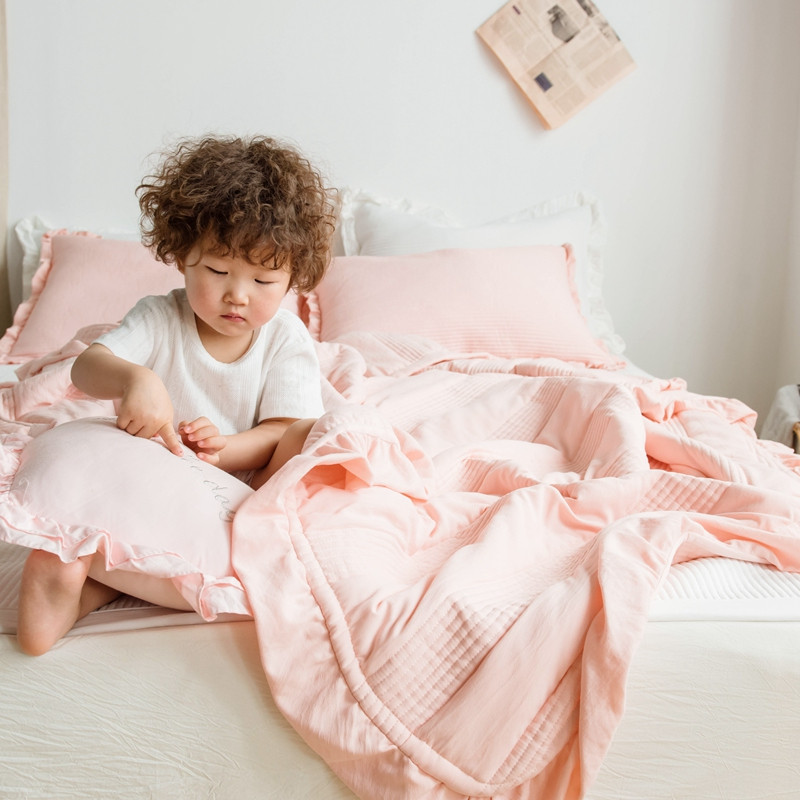 出口韩国外贸款雪纺纱夏被三件套密道床盖空调被棚拍图韩国被粉色