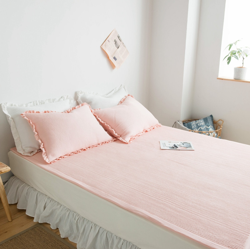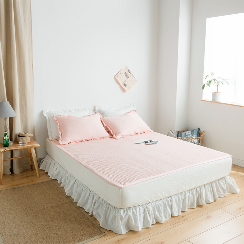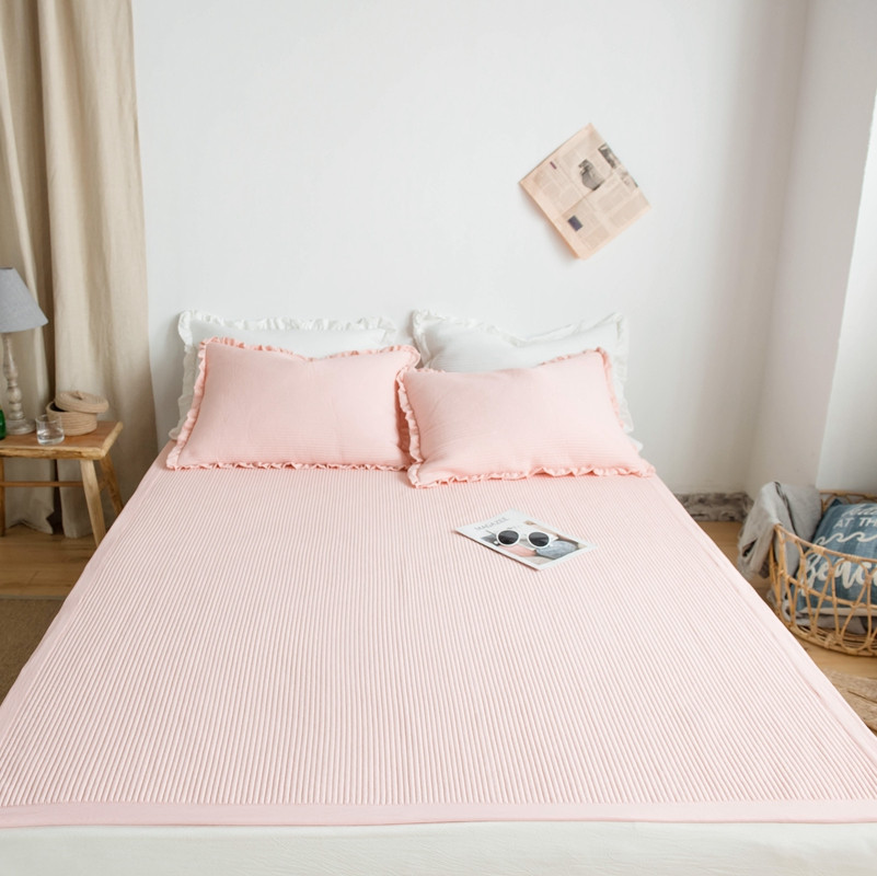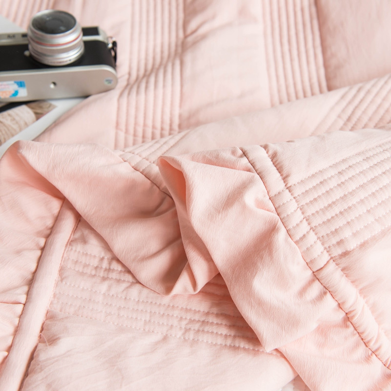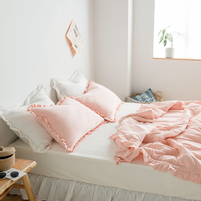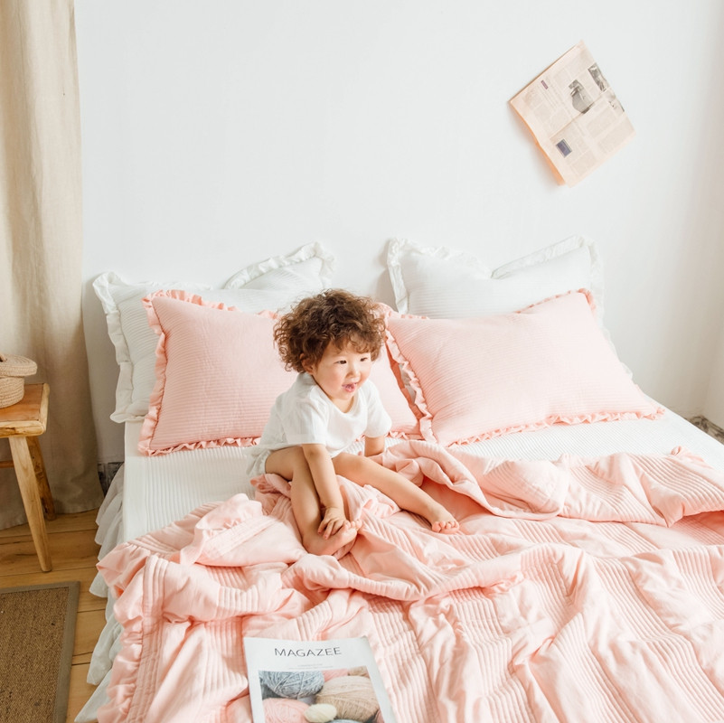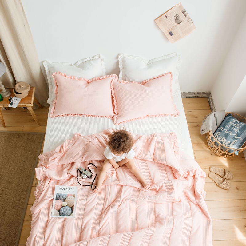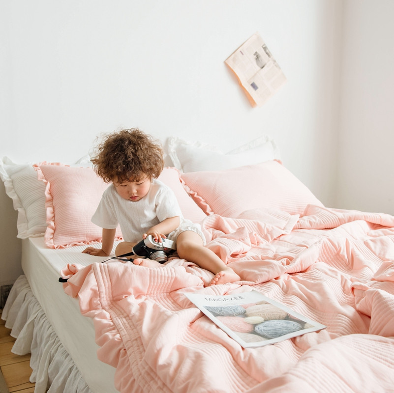 出口韩国外贸款雪纺纱夏被三件套密道床盖空调被棚拍图韩国被粉色