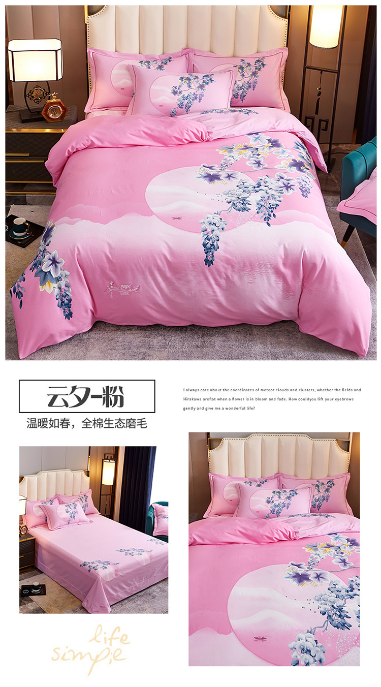 商品名称:雲归梦 2020新款全棉生态磨毛大版四件套 云夕-粉