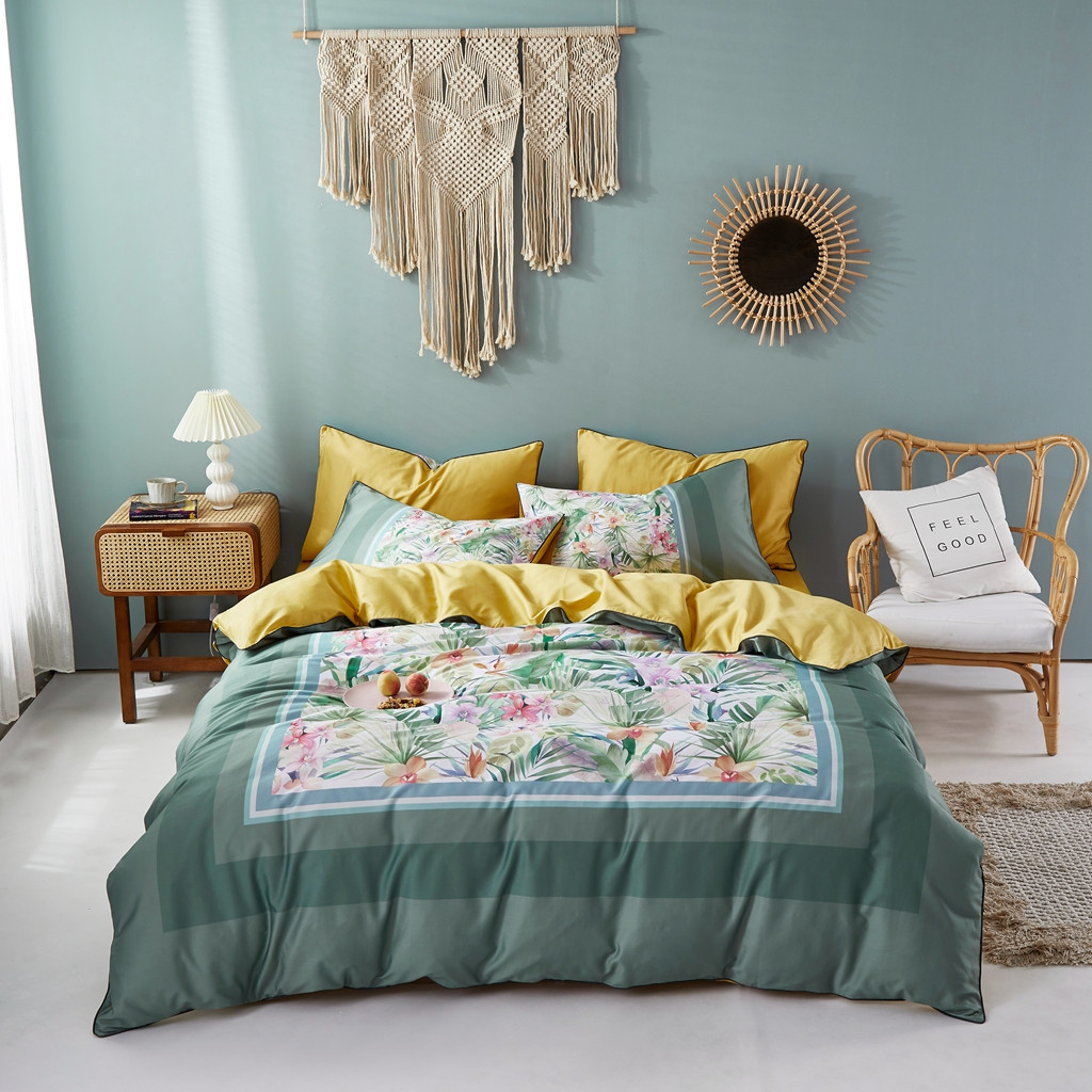 (总)优然居2020新款60S长绒棉数码印印花镶边款四件套