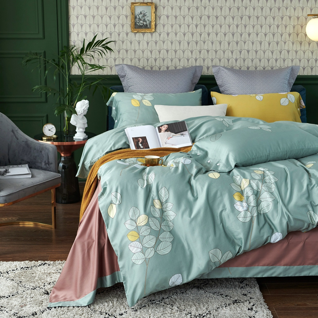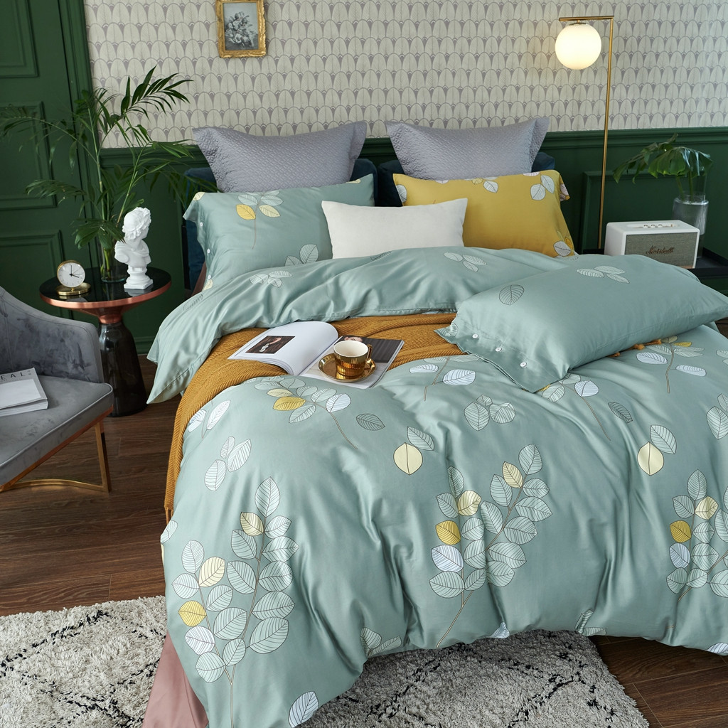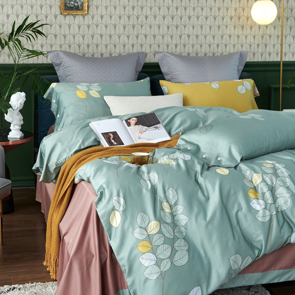 优然居 2020新款60S长绒棉活性印花四件套 浅陌绿