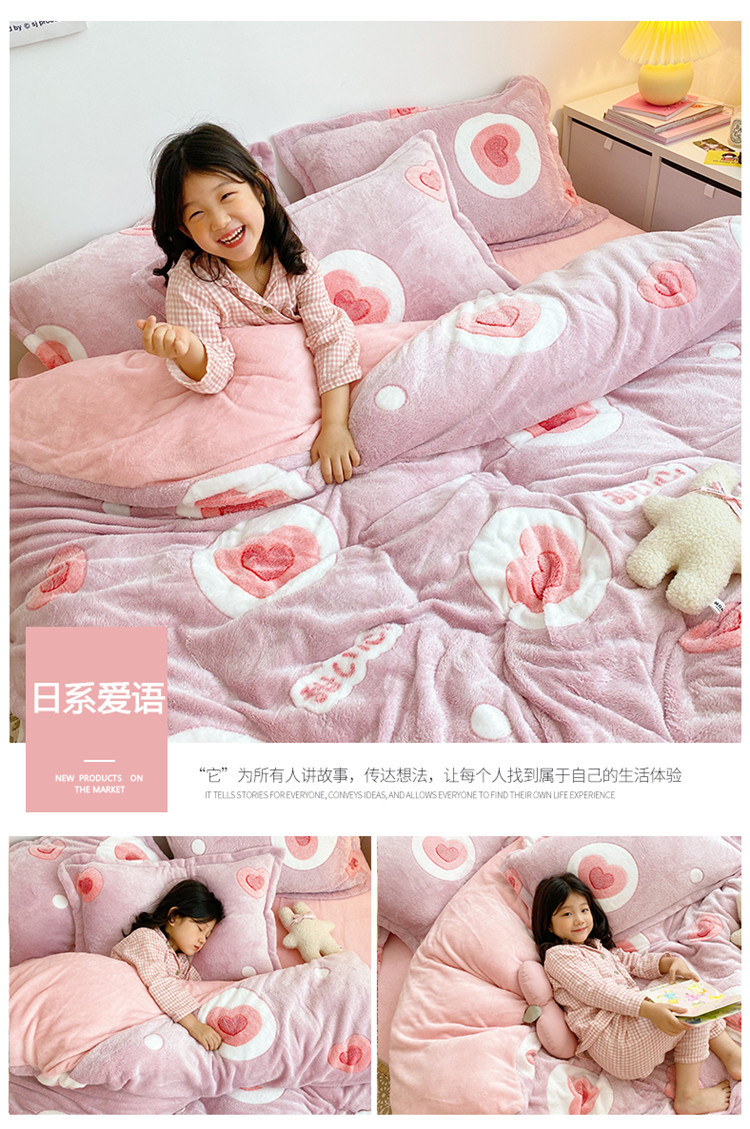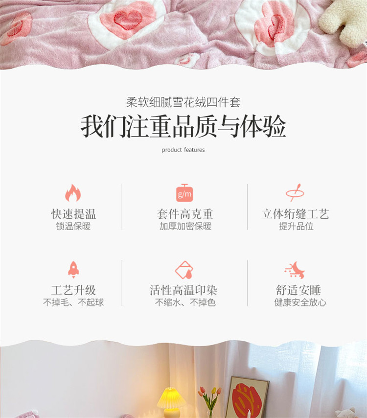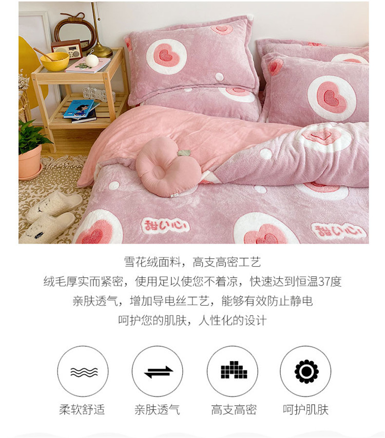 川悦生活 2020新款雪花绒四件套 日系爱语