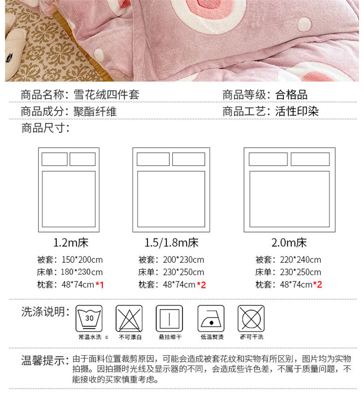 商品名称:川悦生活 2020新款雪花绒四件套 日系爱语