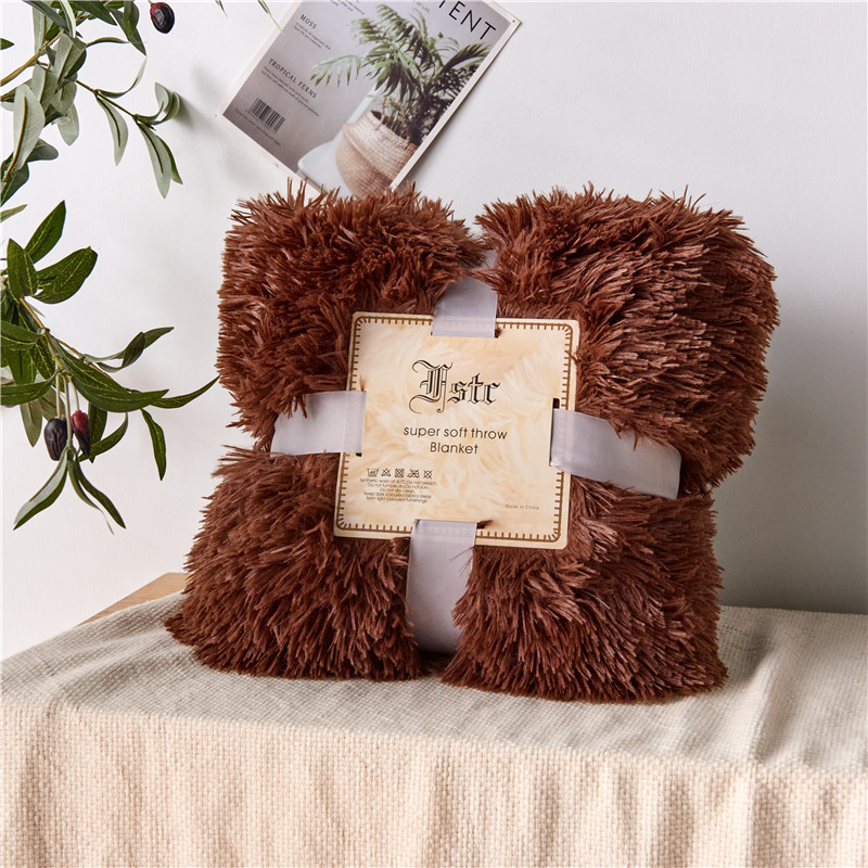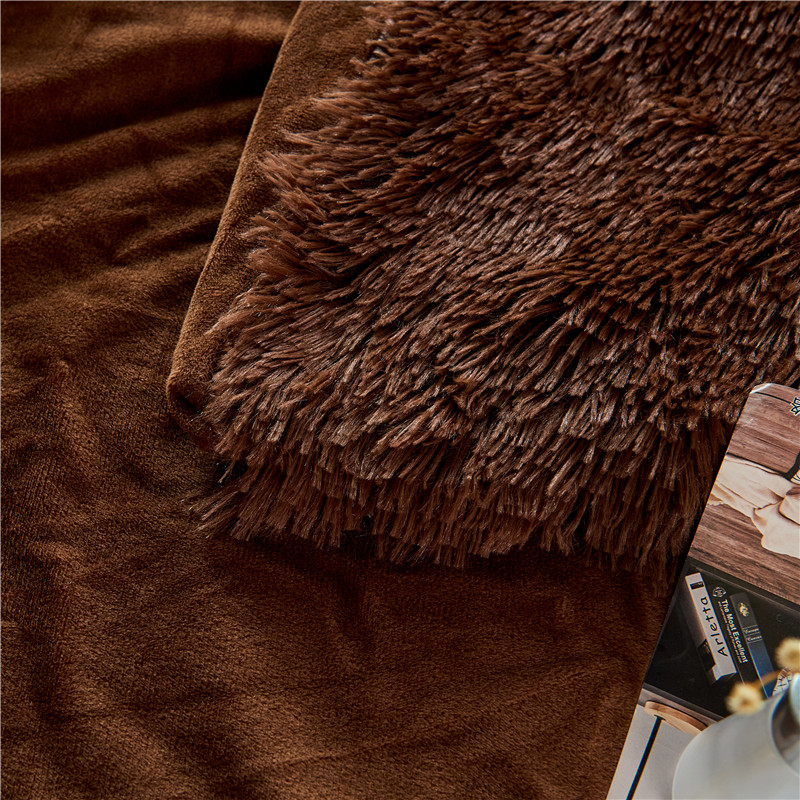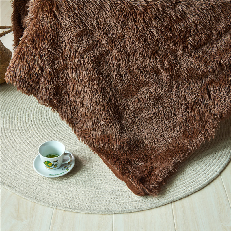 品尚嘉2025水貂绒毛毯长毛绒法莱绒双层跨境外贸毯子 咖啡
