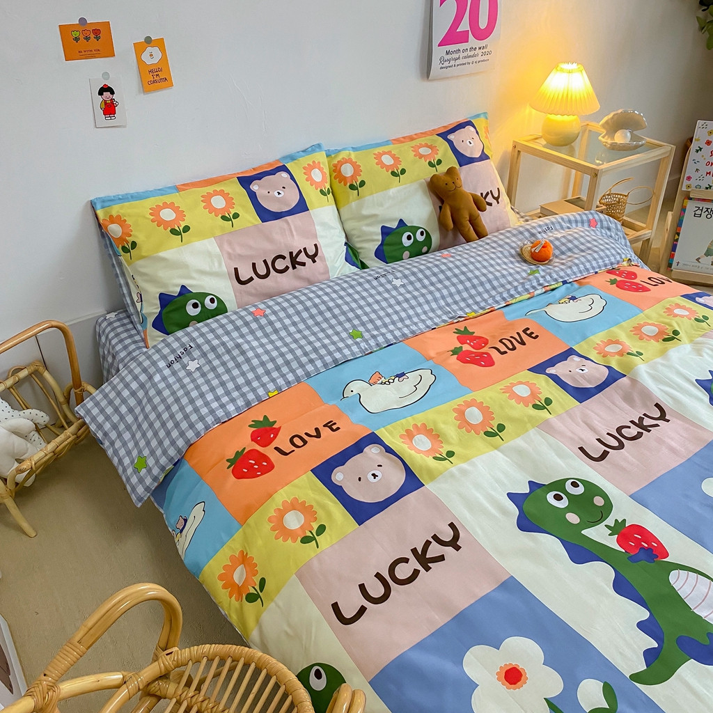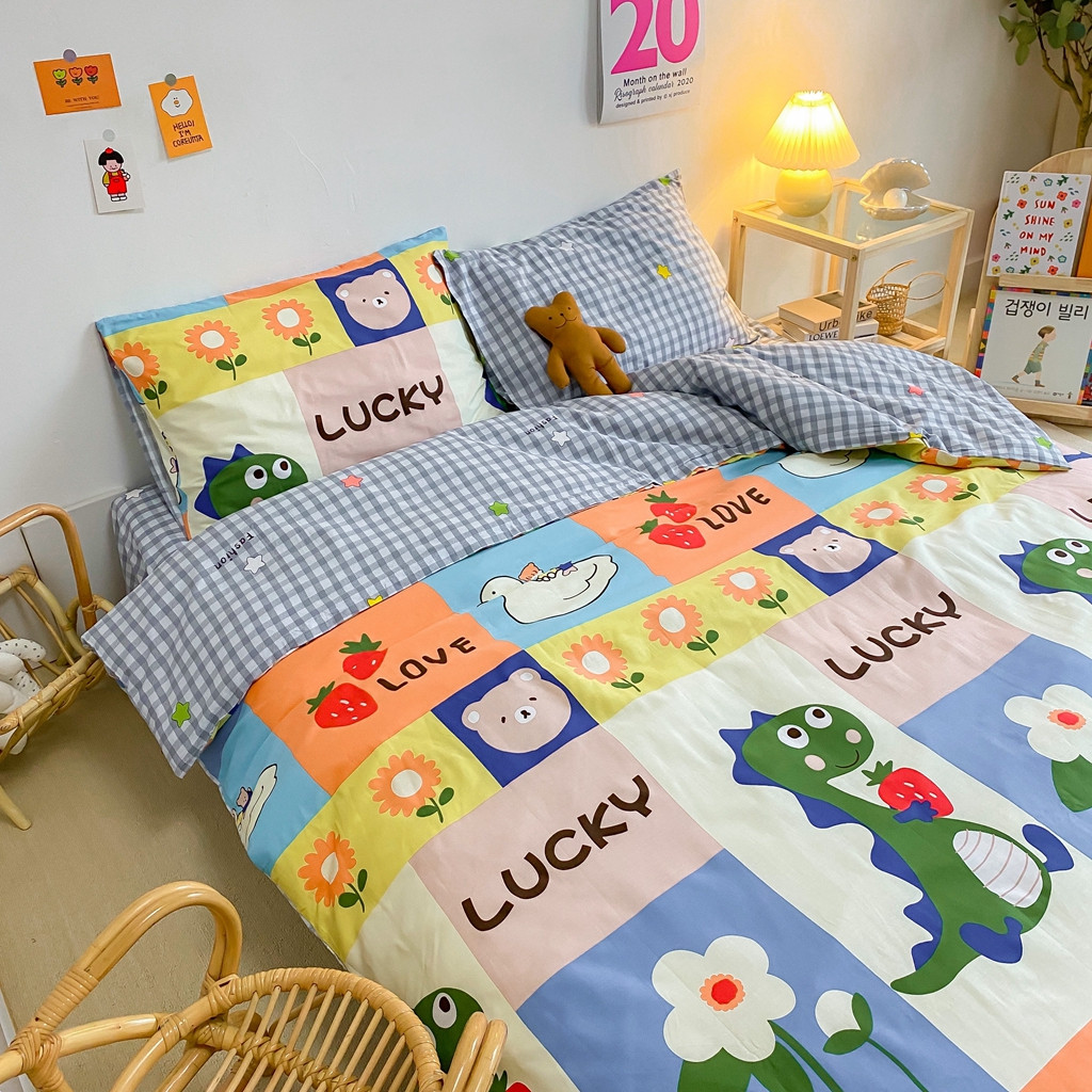 星期八 2020新款全棉13070开学四件套 格子恐龙