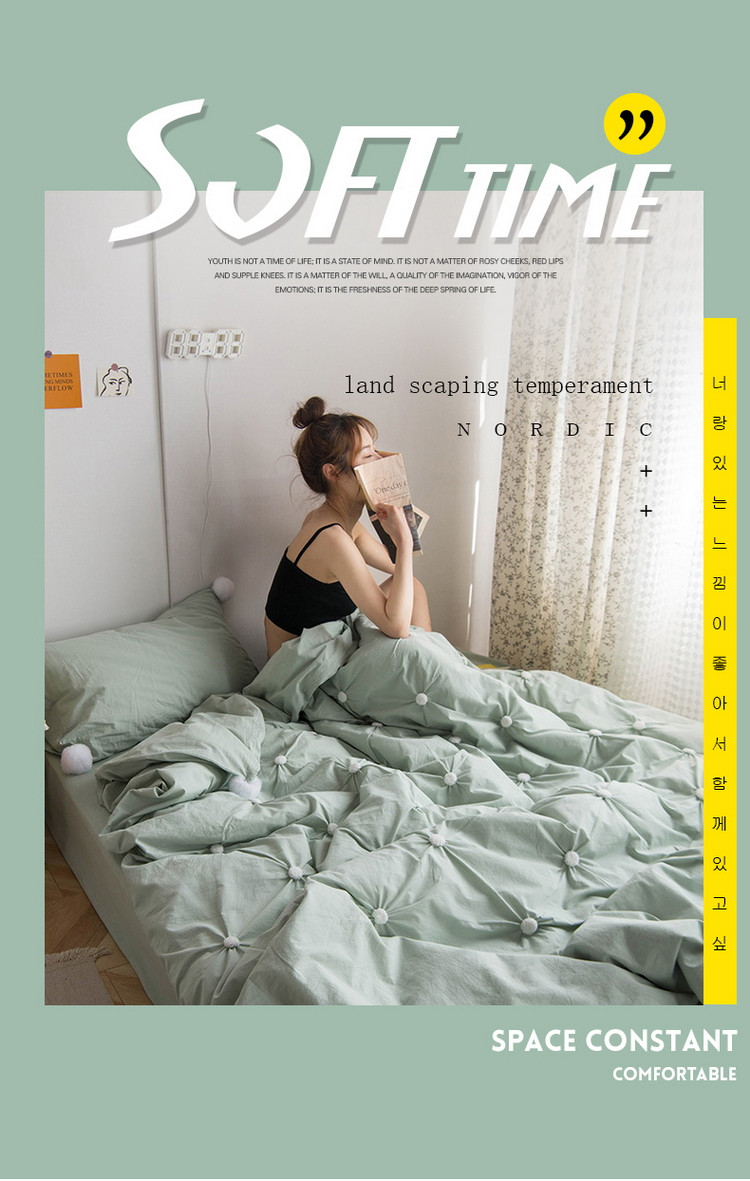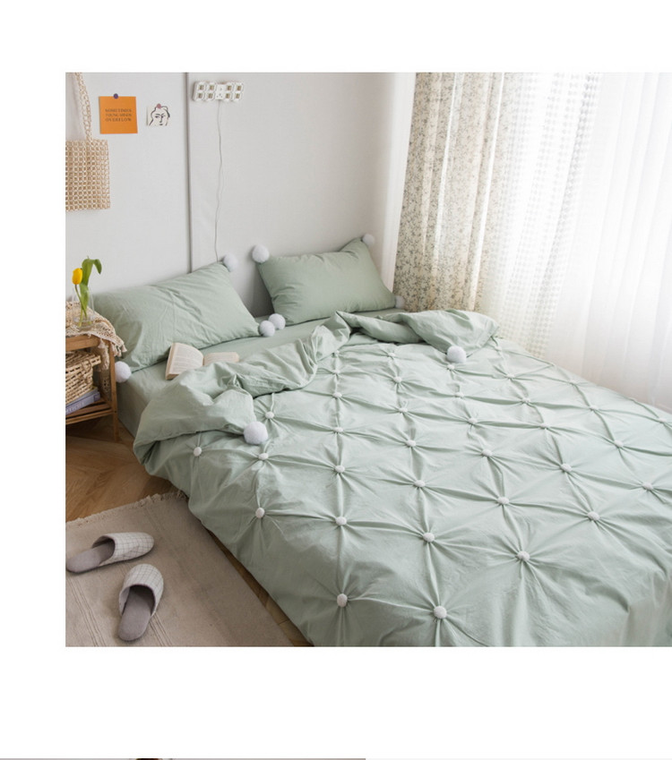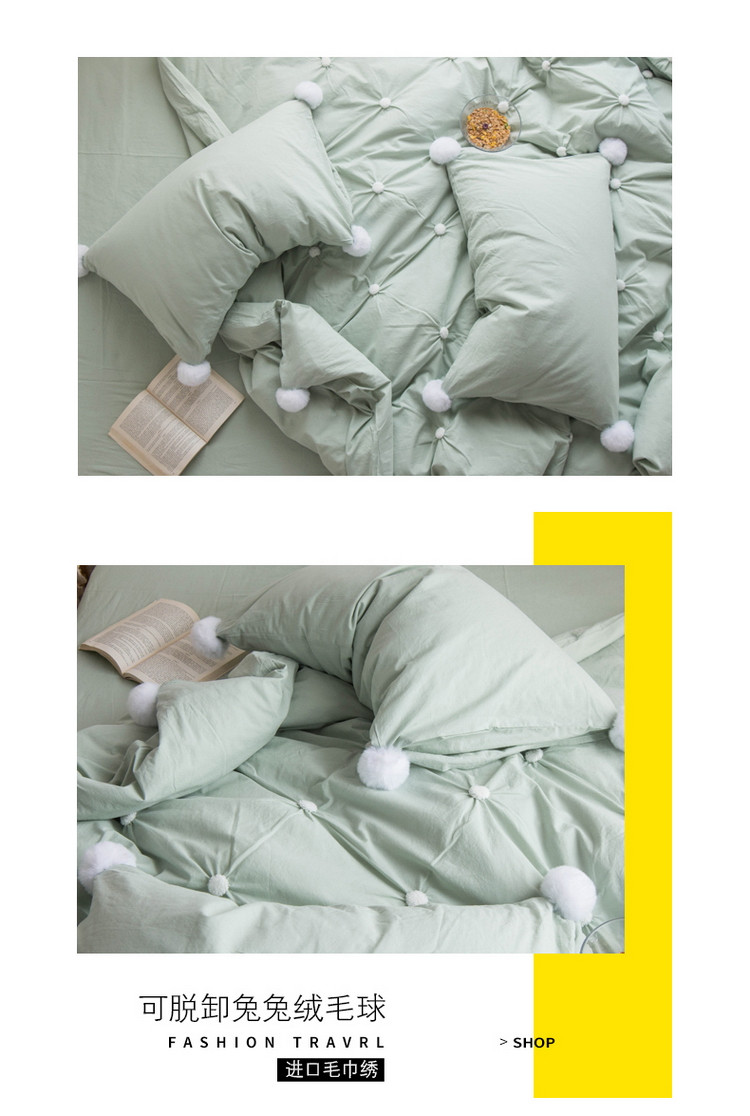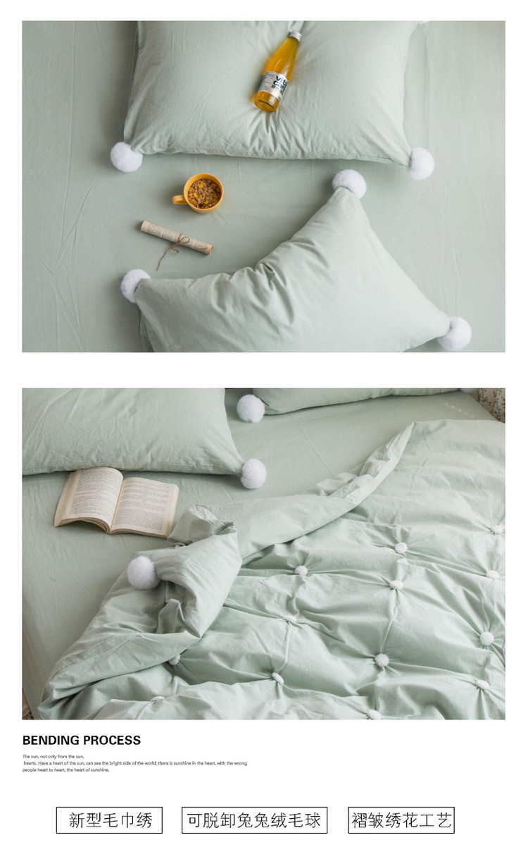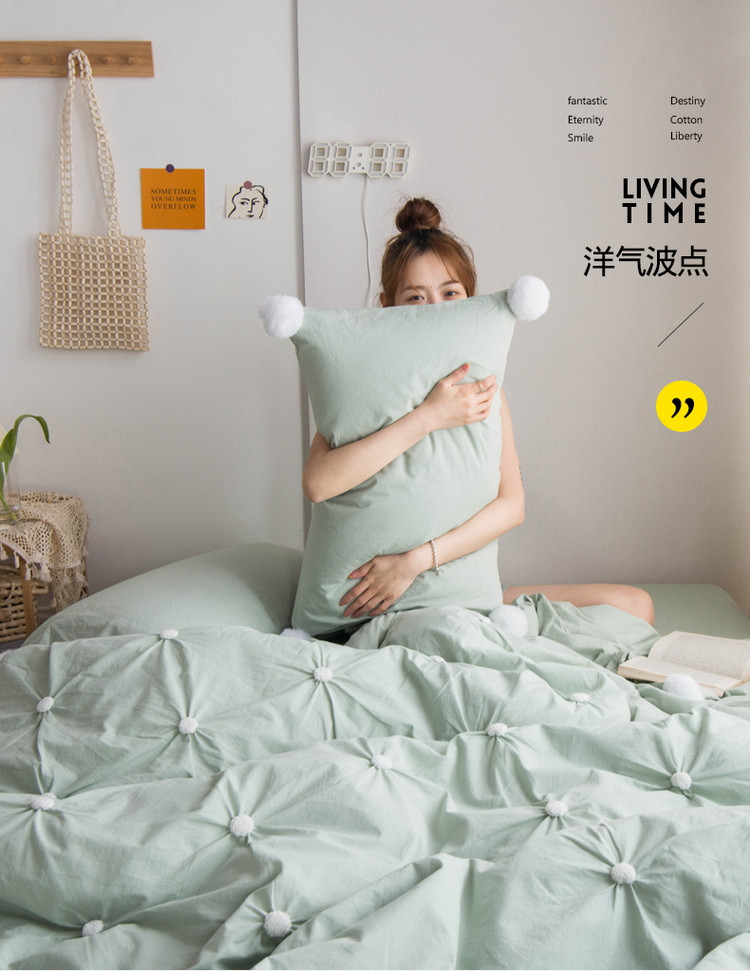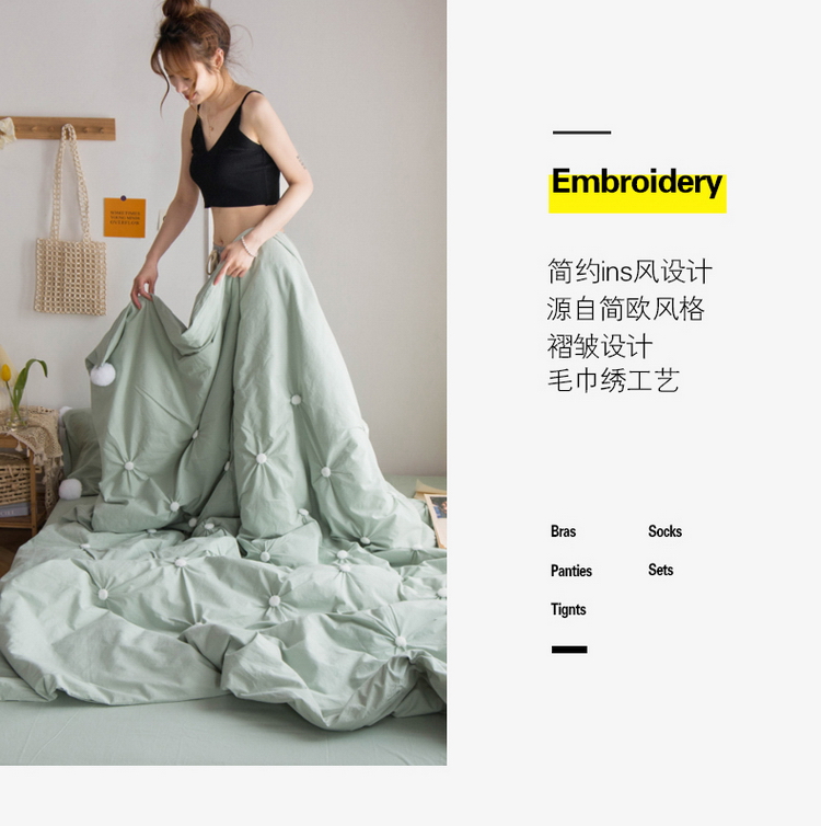 商品名称:漫调 2020新款全棉水洗棉波点毛巾绣四件套 牛油果绿