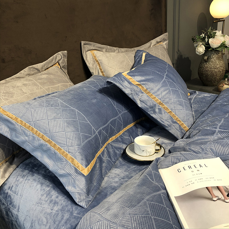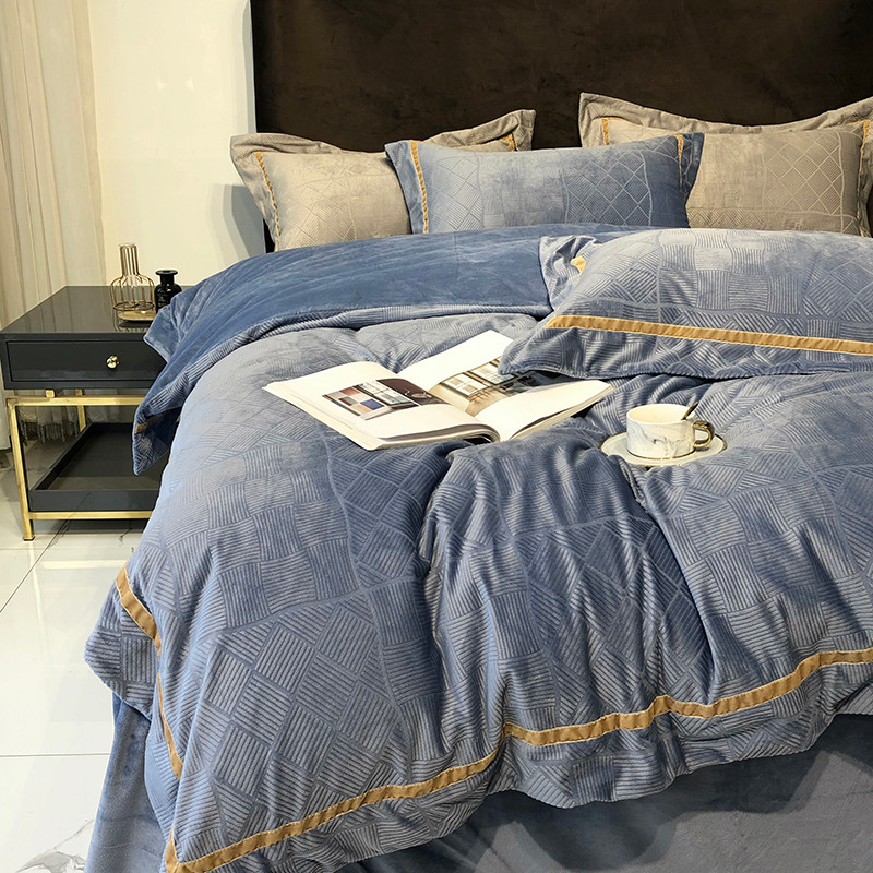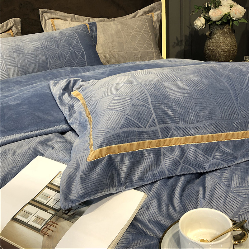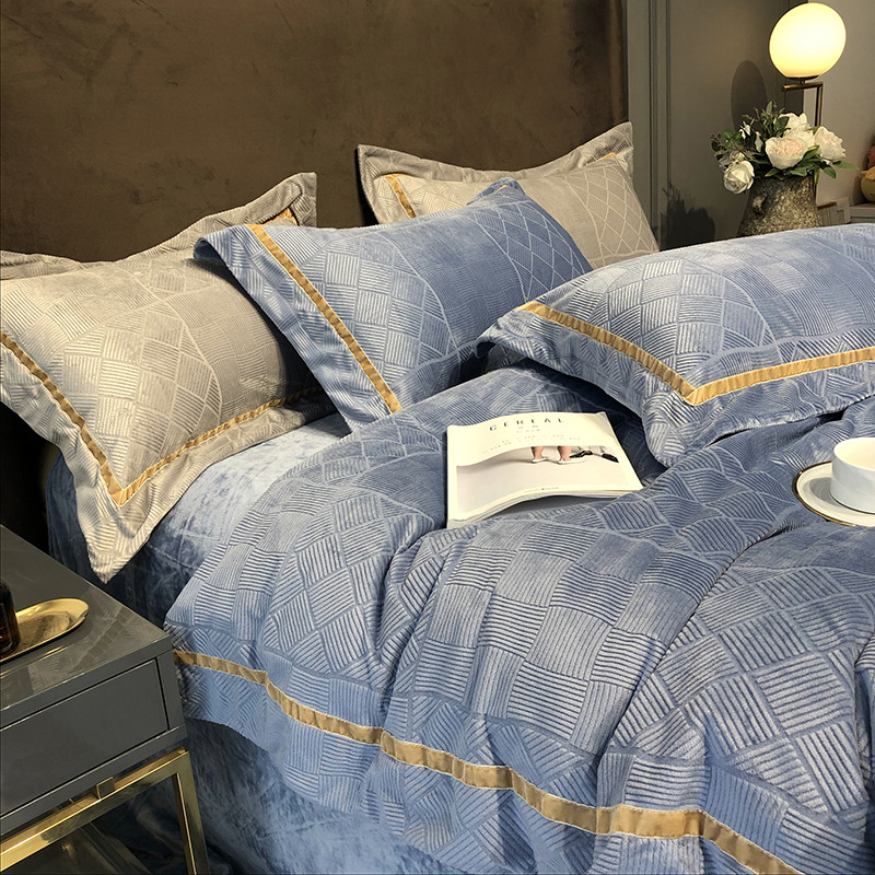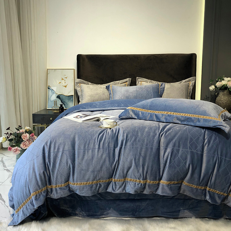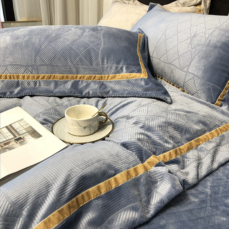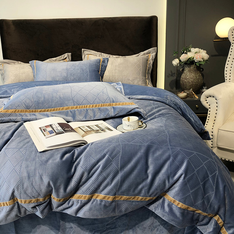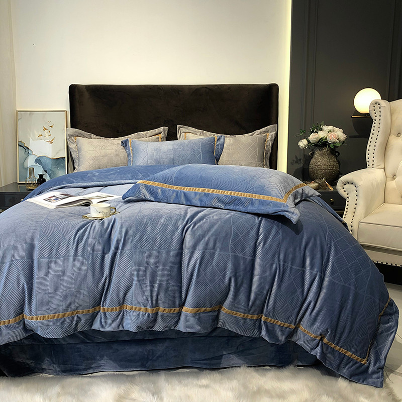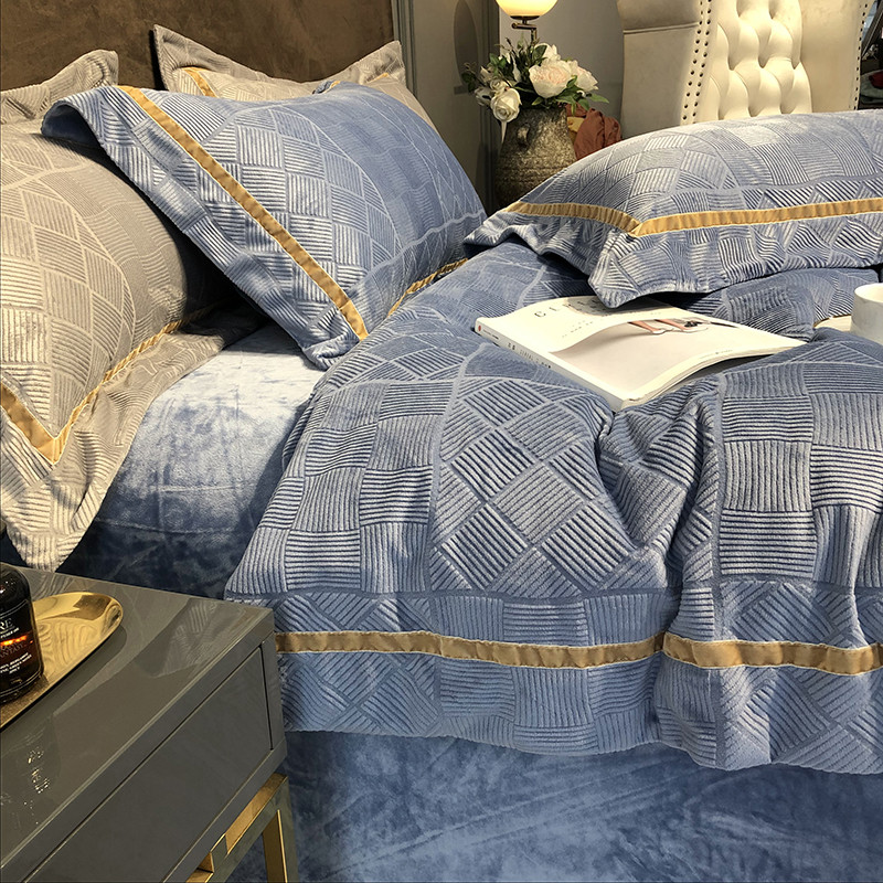 商品名称:太古汇2020新款日本进口立体提花雕花绒四件套 湛蓝