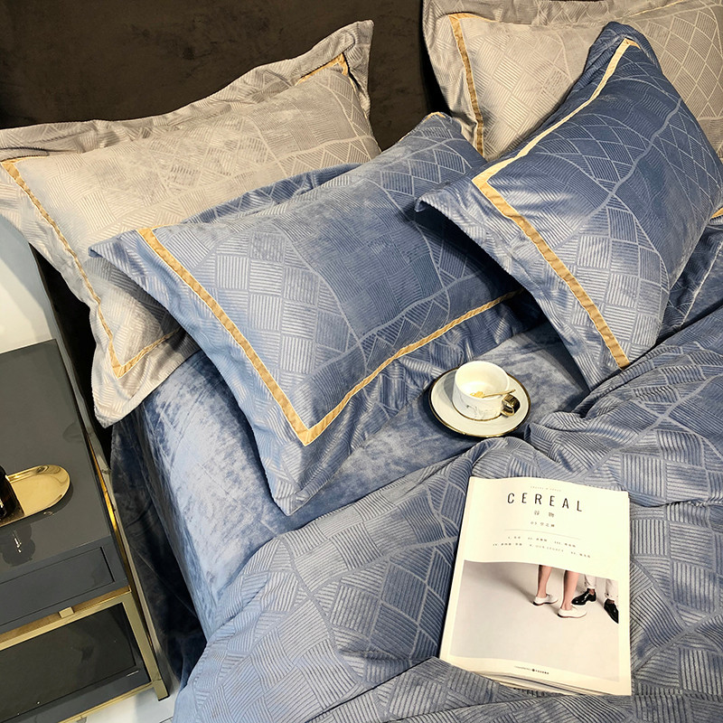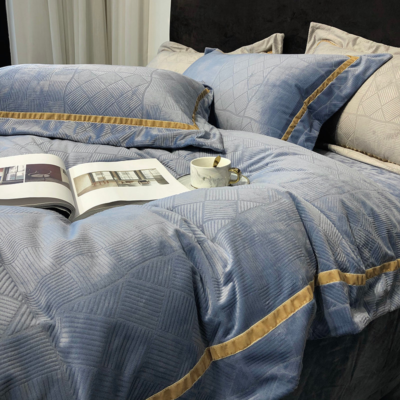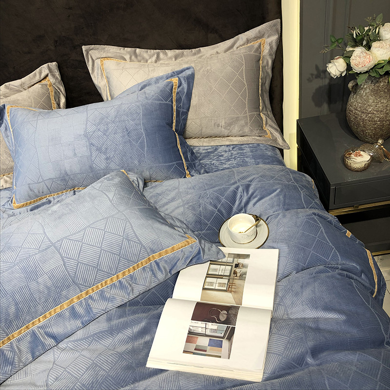 太古汇2020新款日本进口立体提花雕花绒四件套 湛蓝