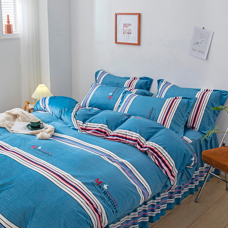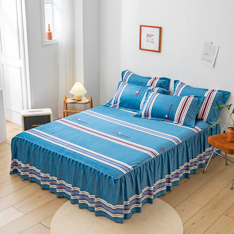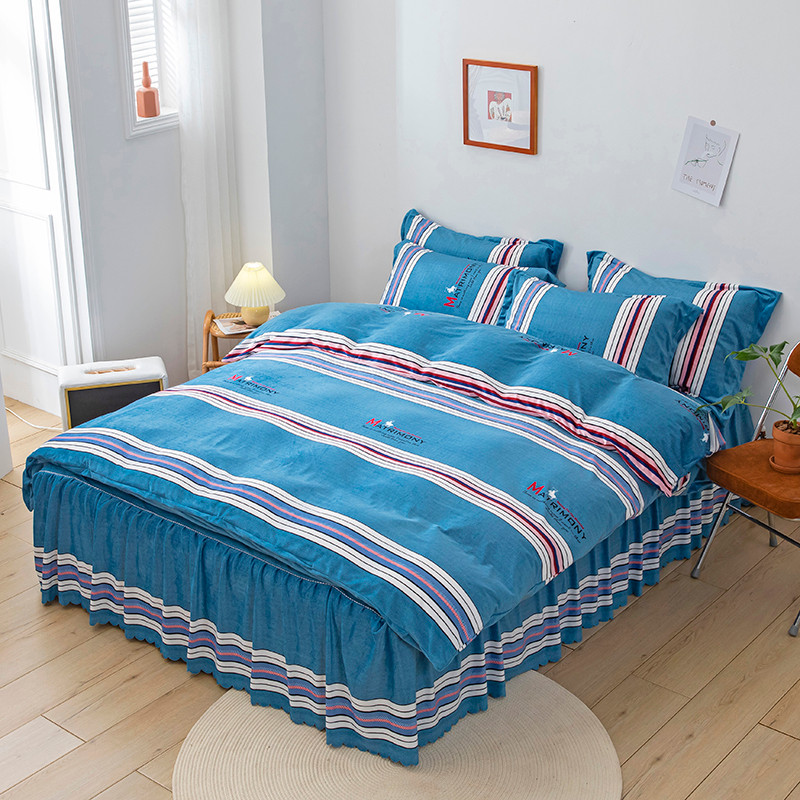 纽缦 2020新款绒单层床裙四件套 索菲亚蓝