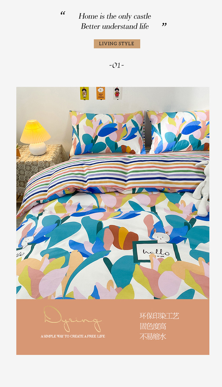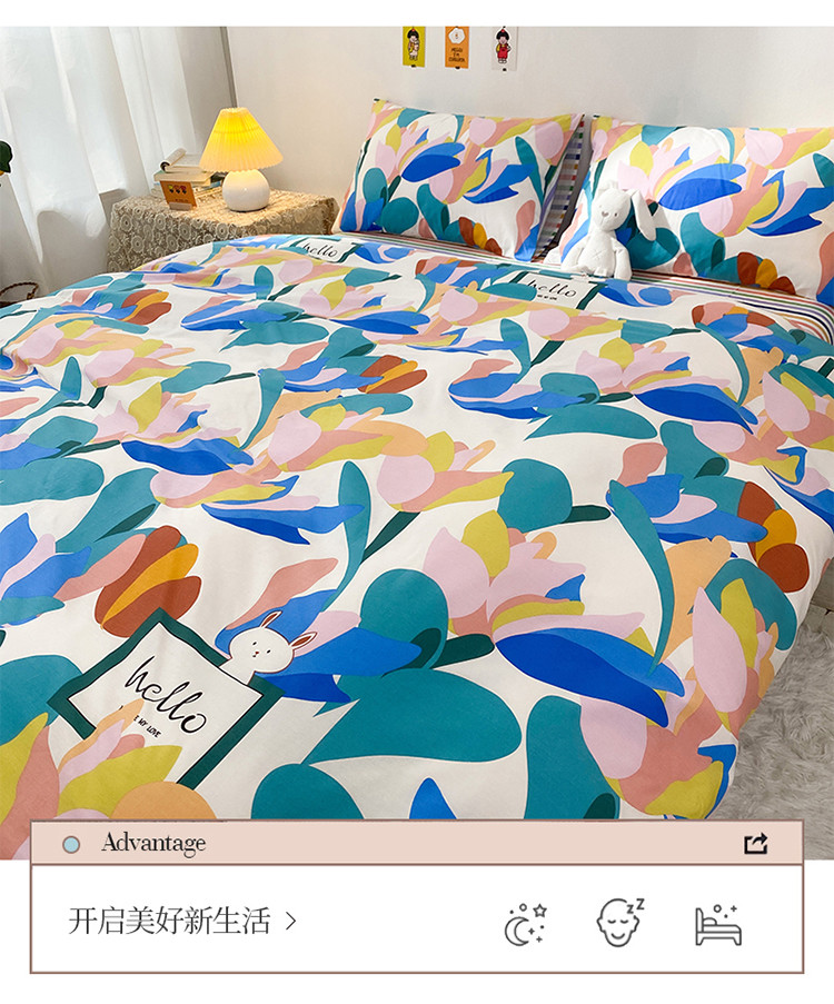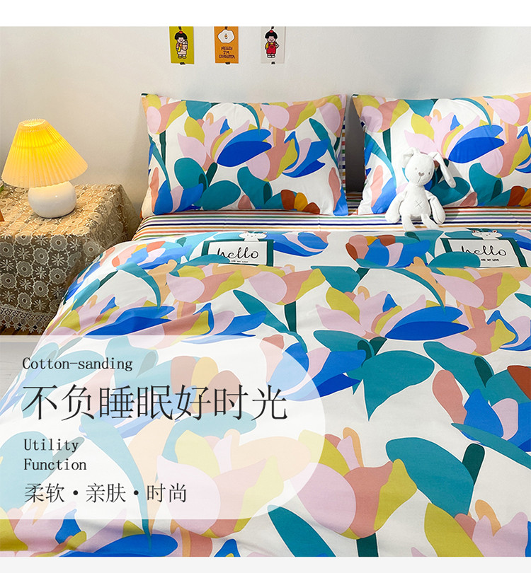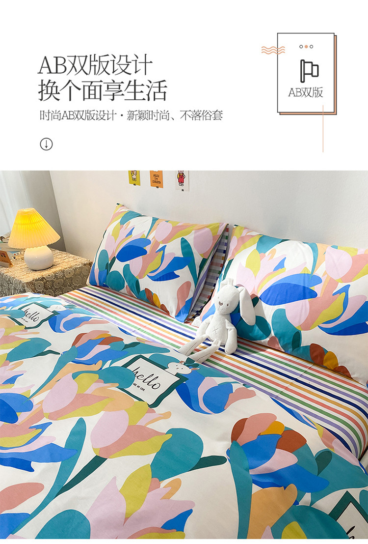 (总)珺柔家纺 2023新款13372全棉印花四件套,朵拉花园,粉色郁金香 ,可爱兔,迷你兔,太阳花,顽皮狗,喜结连理,薰衣草