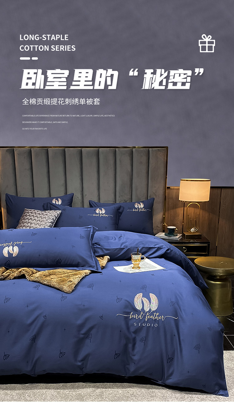 品乐家纺 2023新款长绒棉提花刺绣单被套 蒲公英-蓝