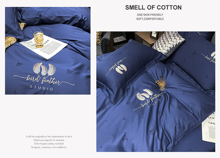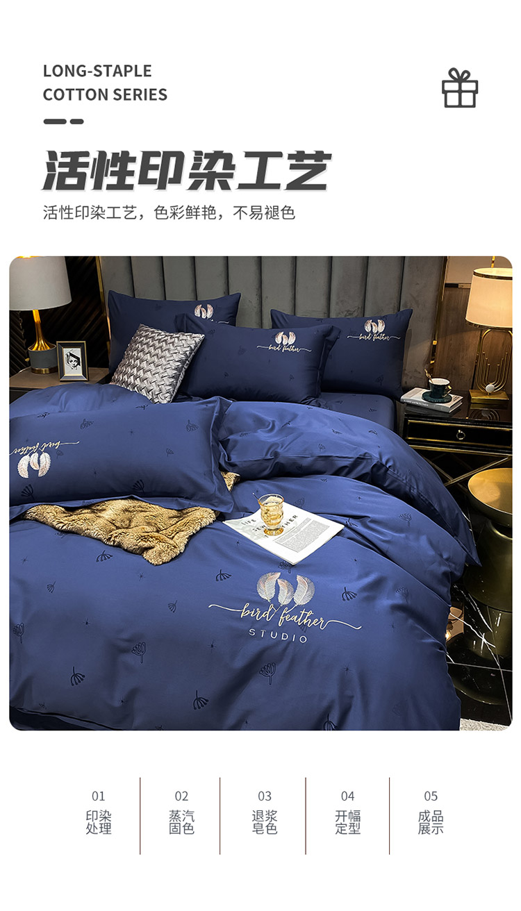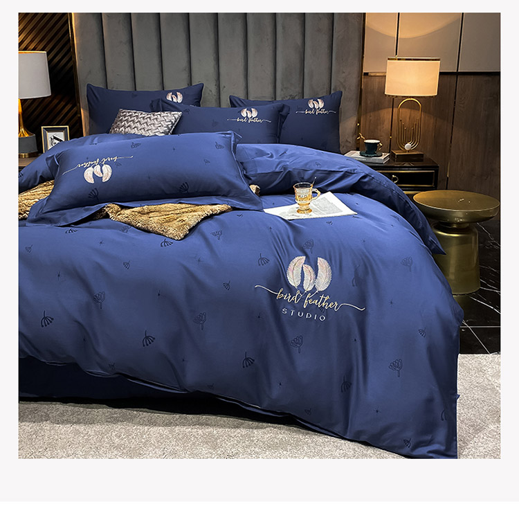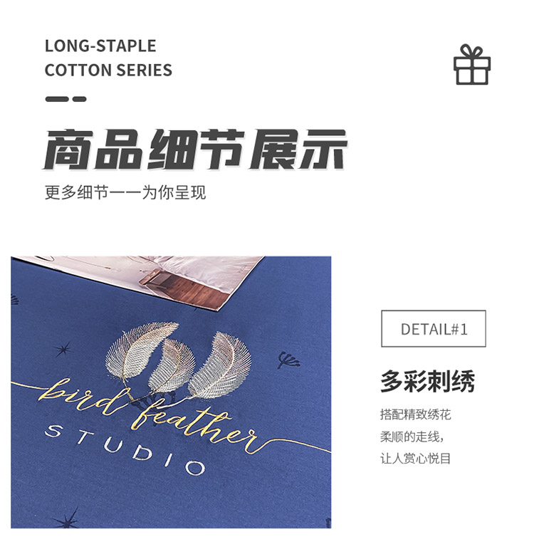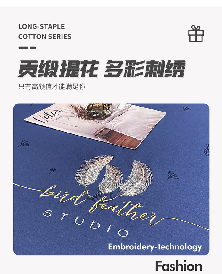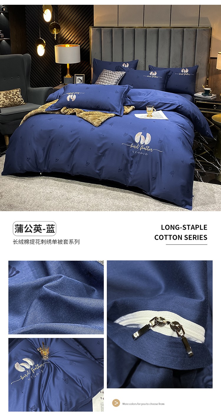 商品名称:品乐家纺 2023新款长绒棉提花刺绣单被套 蒲公英-蓝