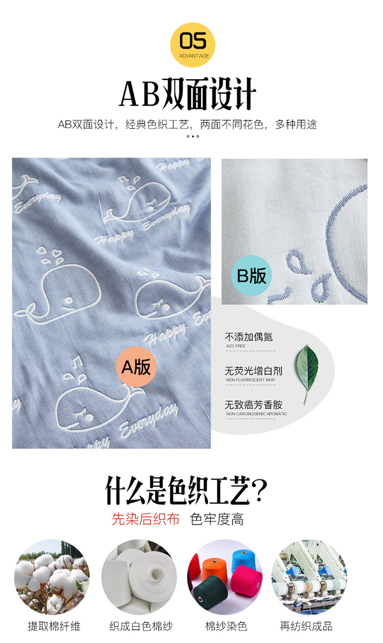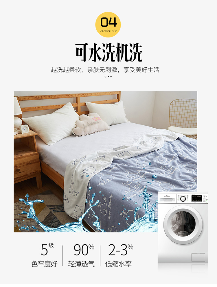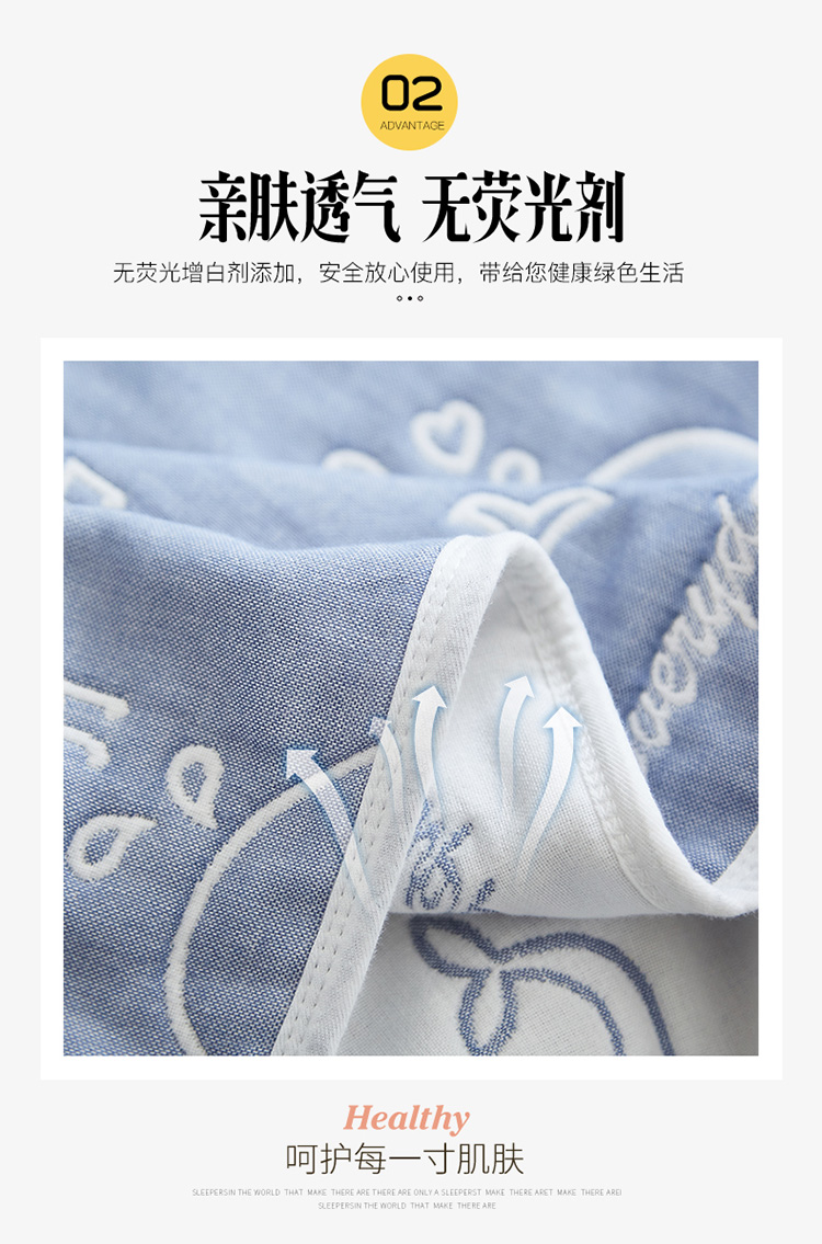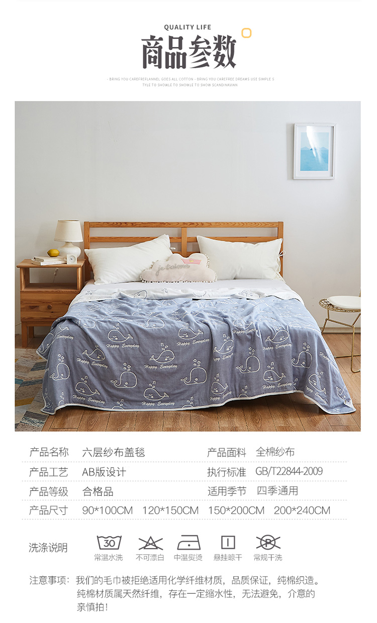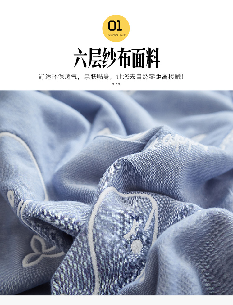 商品名称:爱港2023新款专版全棉六层纱布毛巾被盖毯 羽毛-蓝