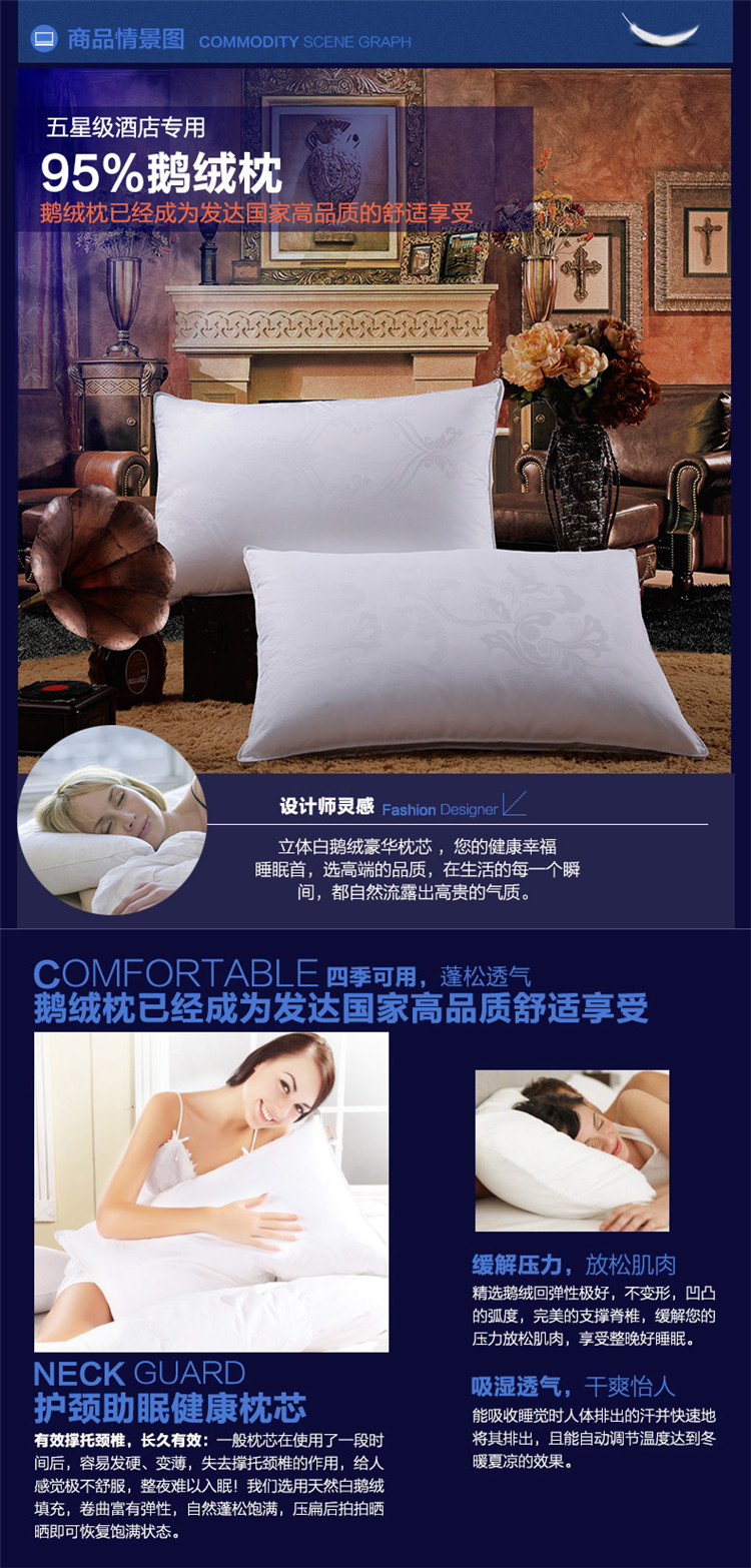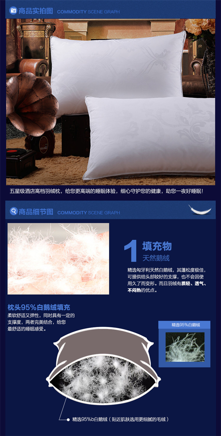 商品名称:(总)晋瑞 新款60支全棉缎纹提花雅致鹅绒枕