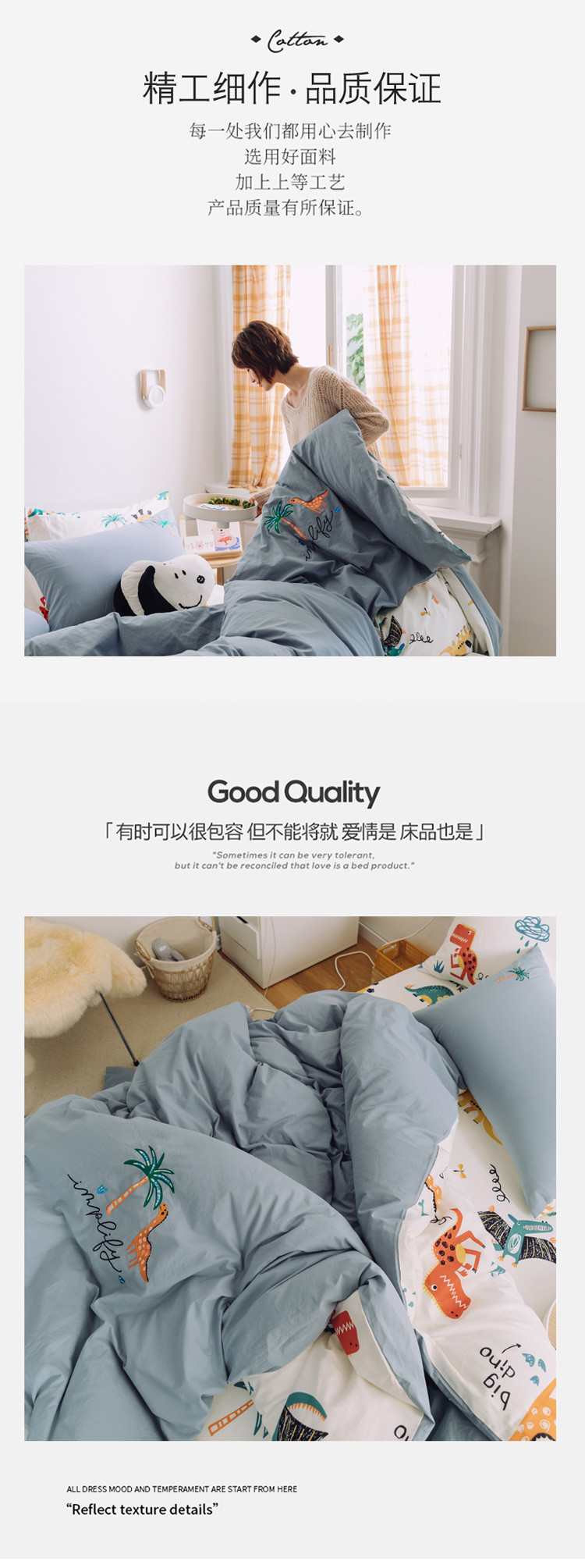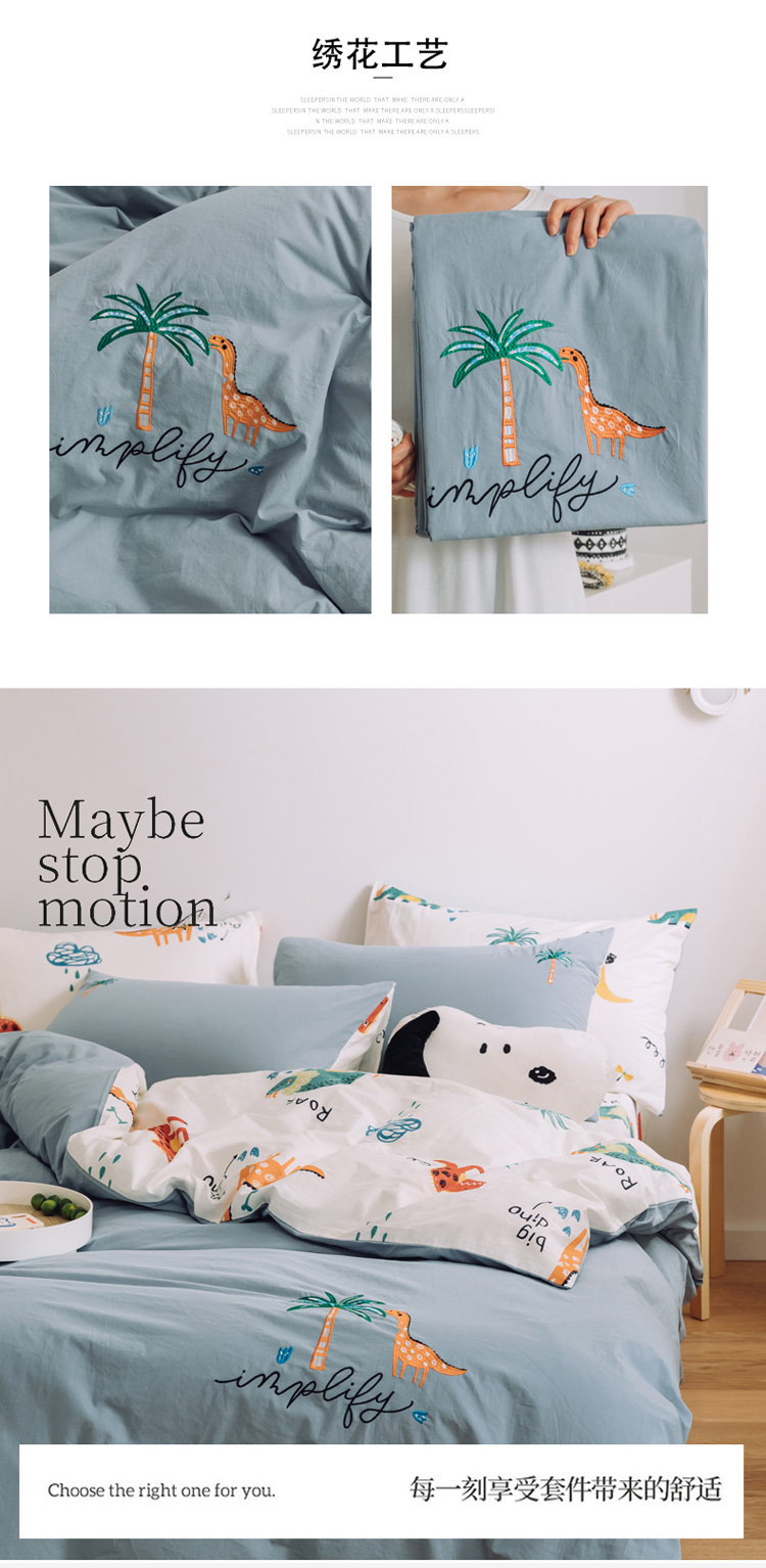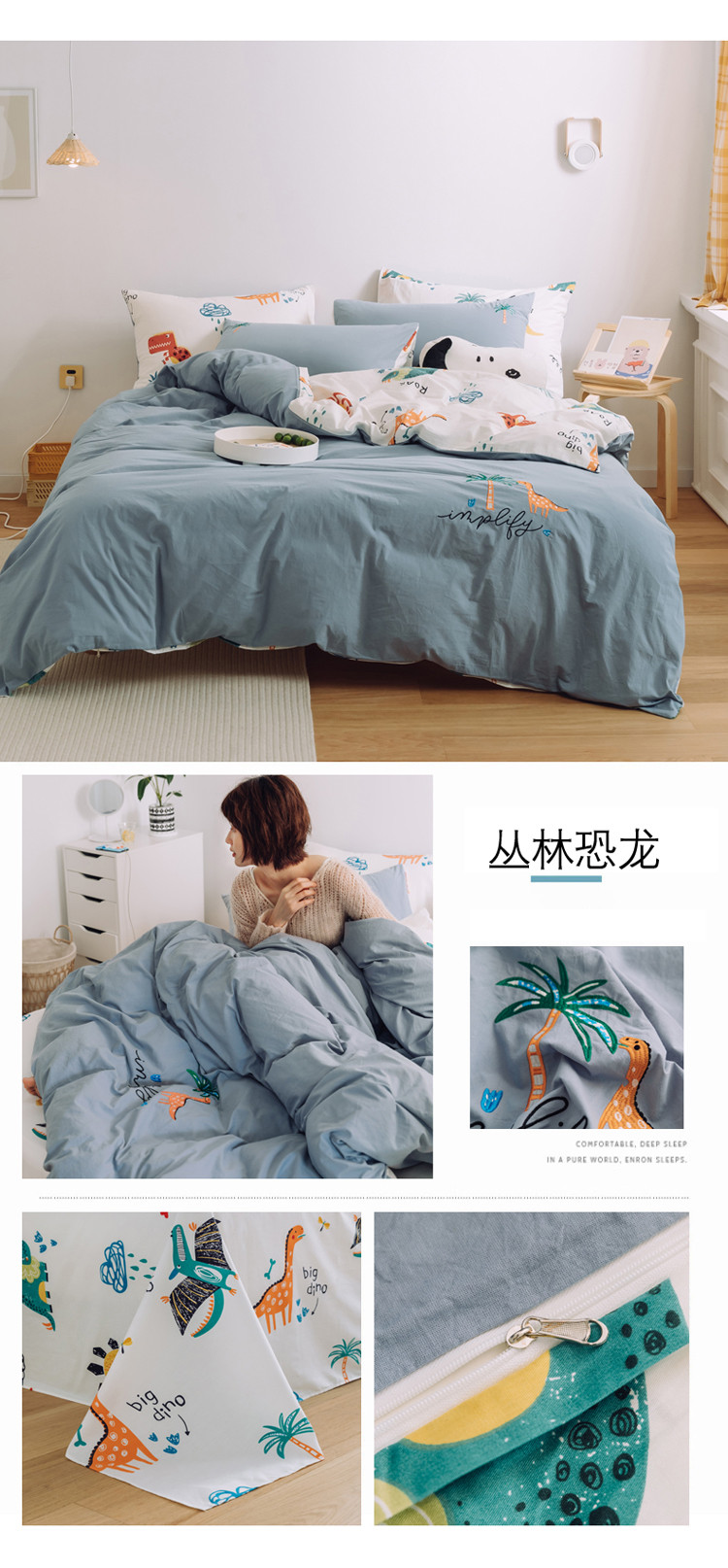 雅居纺 2022新款全棉水洗棉绣花四件套 丛林恐龙