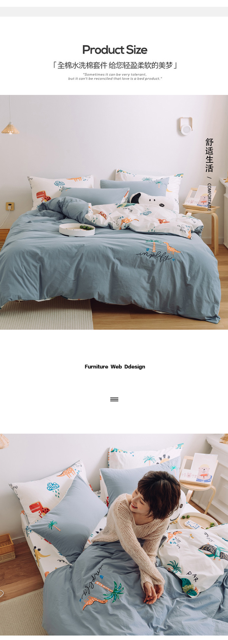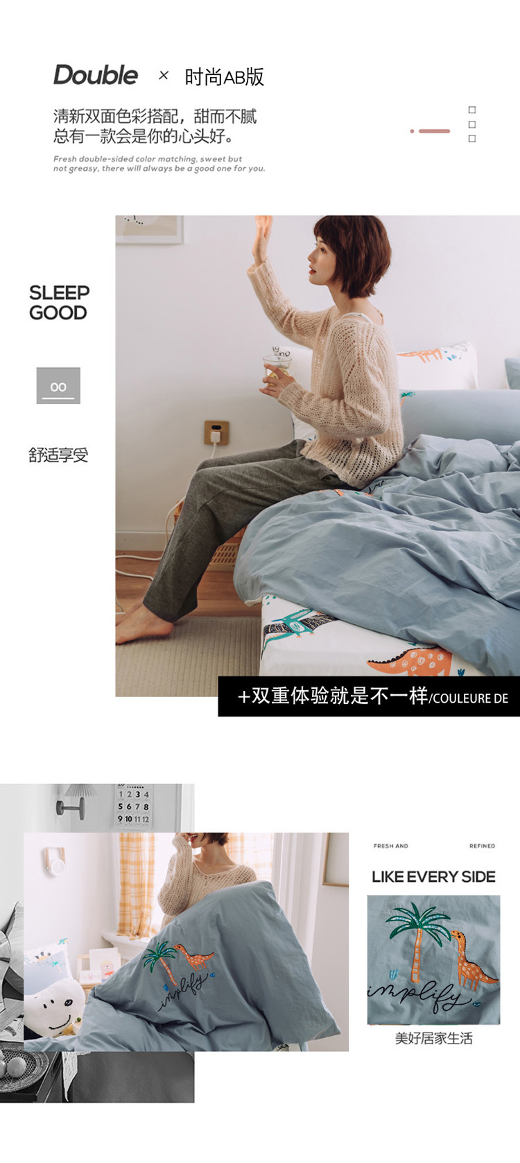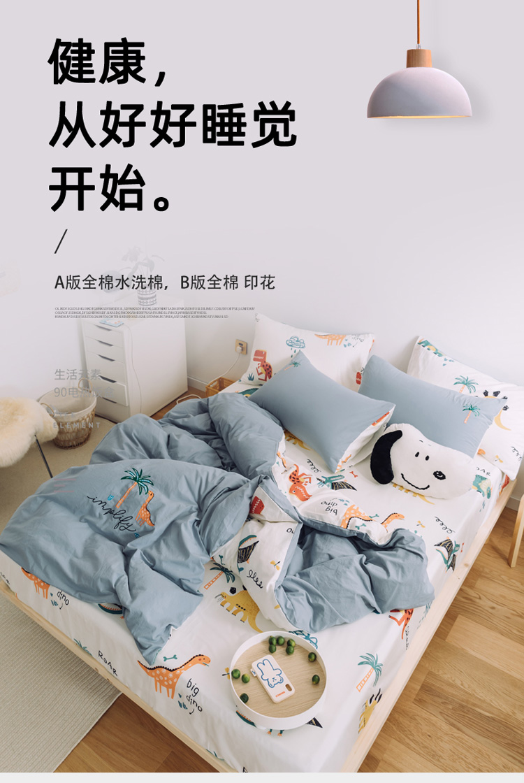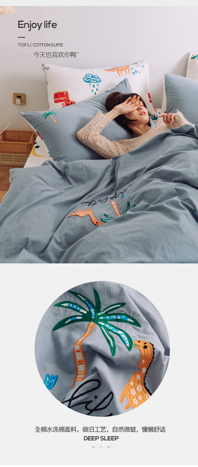 雅居纺 2022新款全棉水洗棉绣花四件套 丛林恐龙
