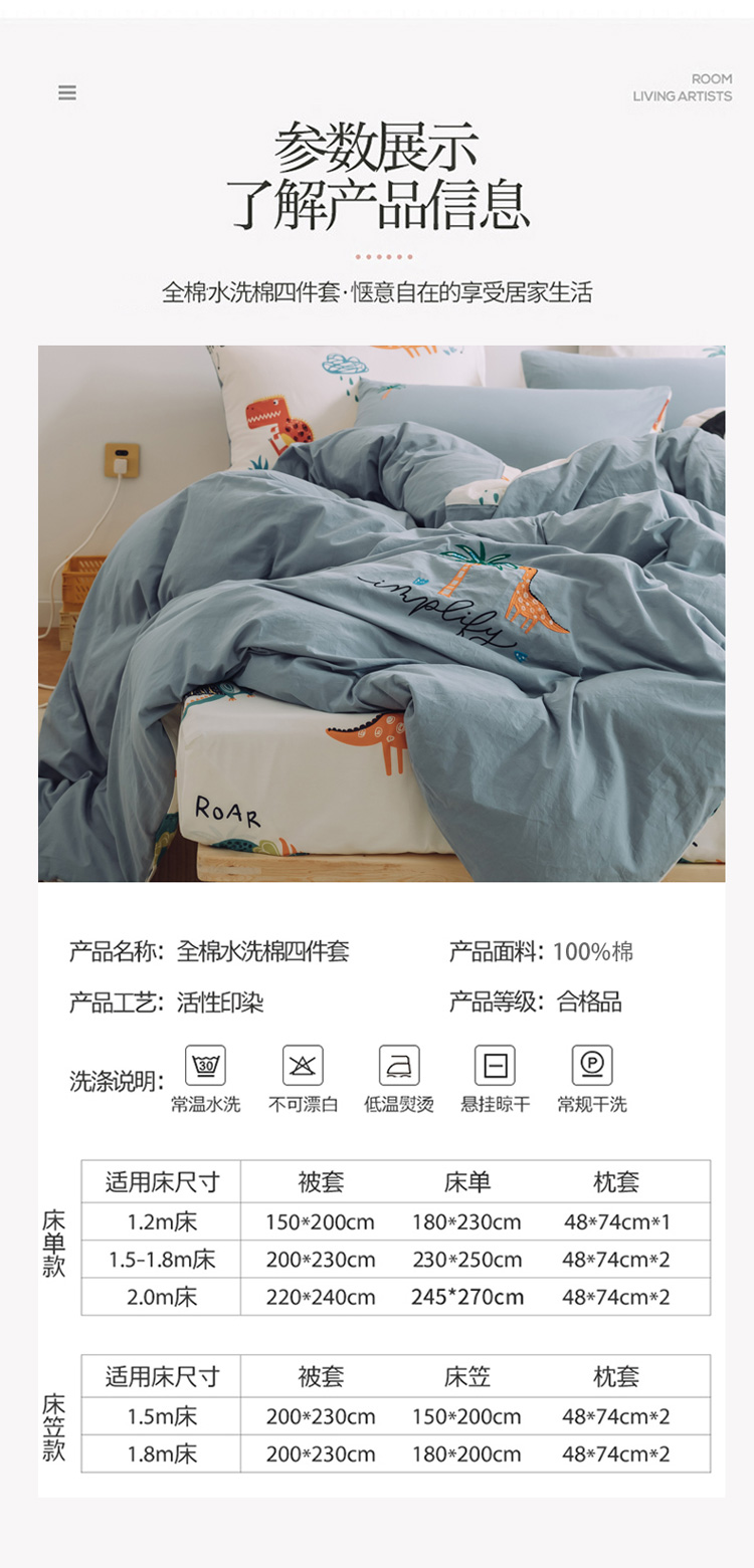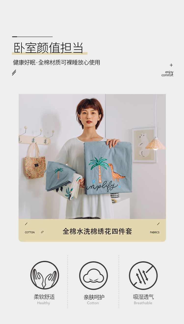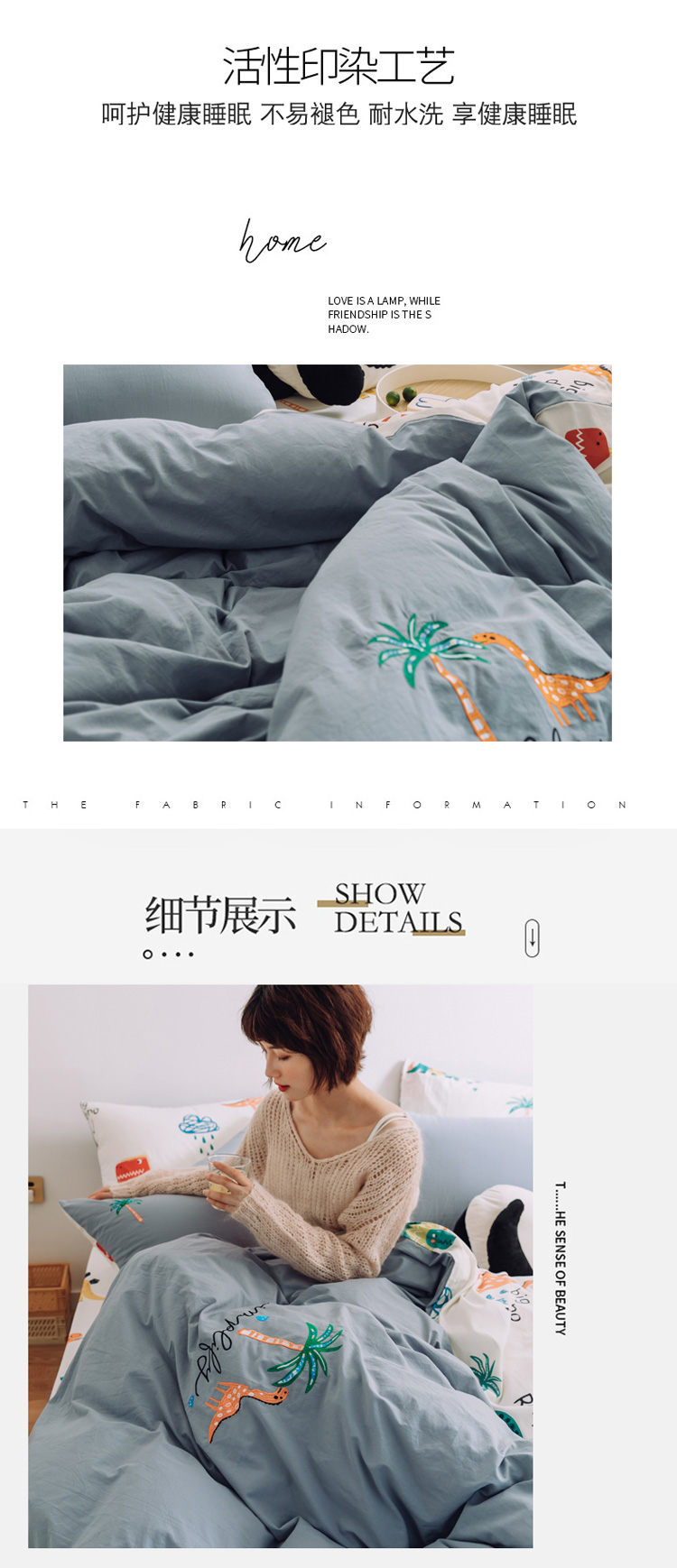 商品名称:雅居纺 2022新款全棉水洗棉绣花四件套 丛林恐龙