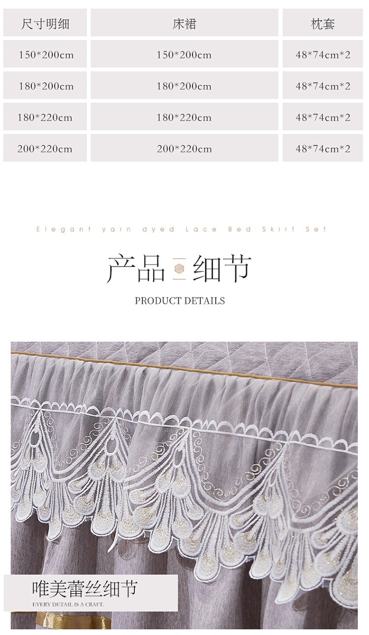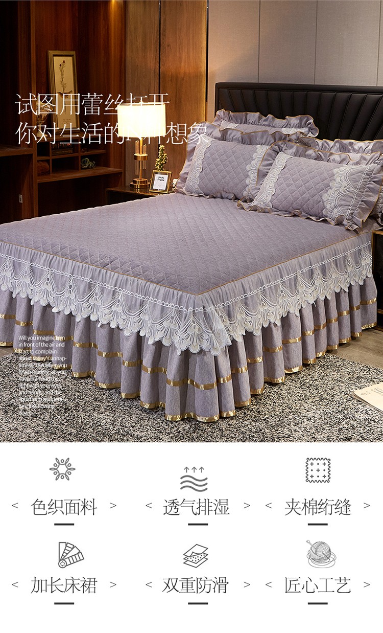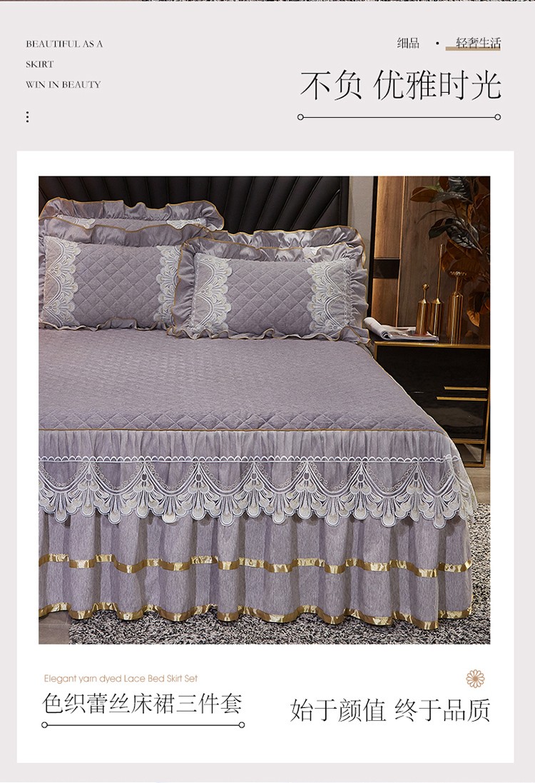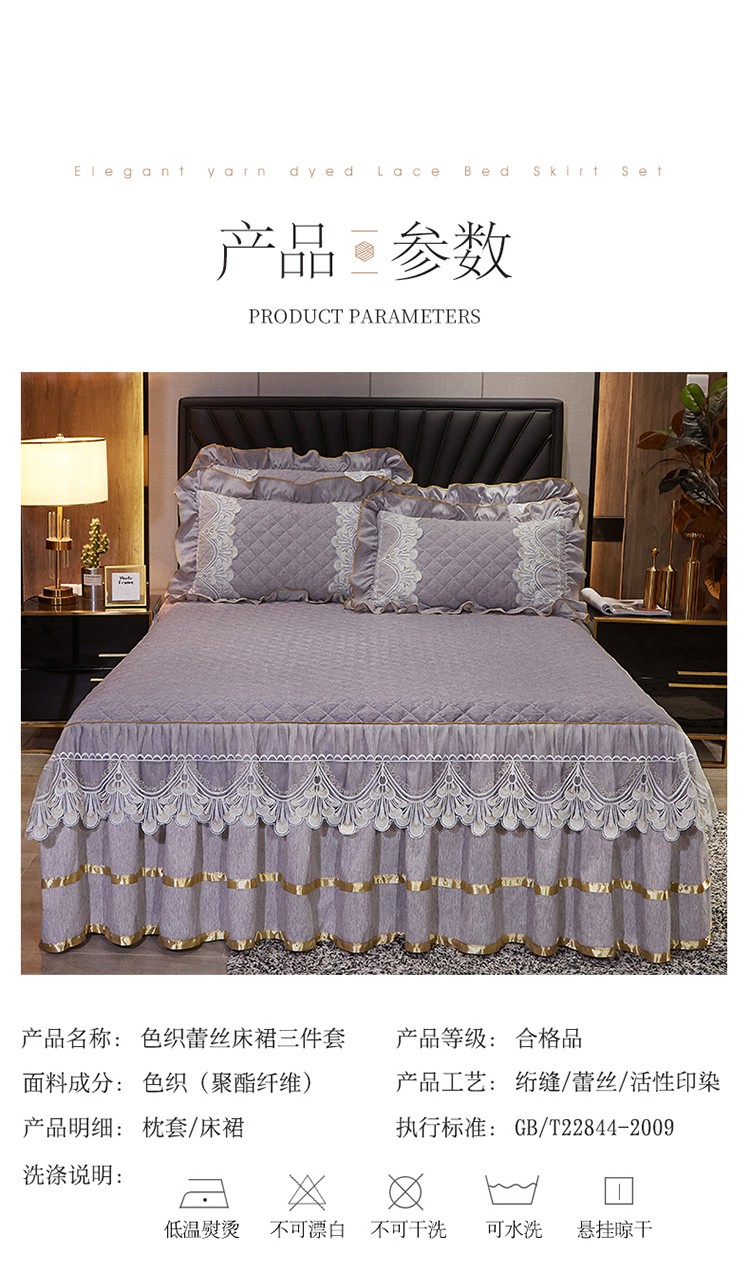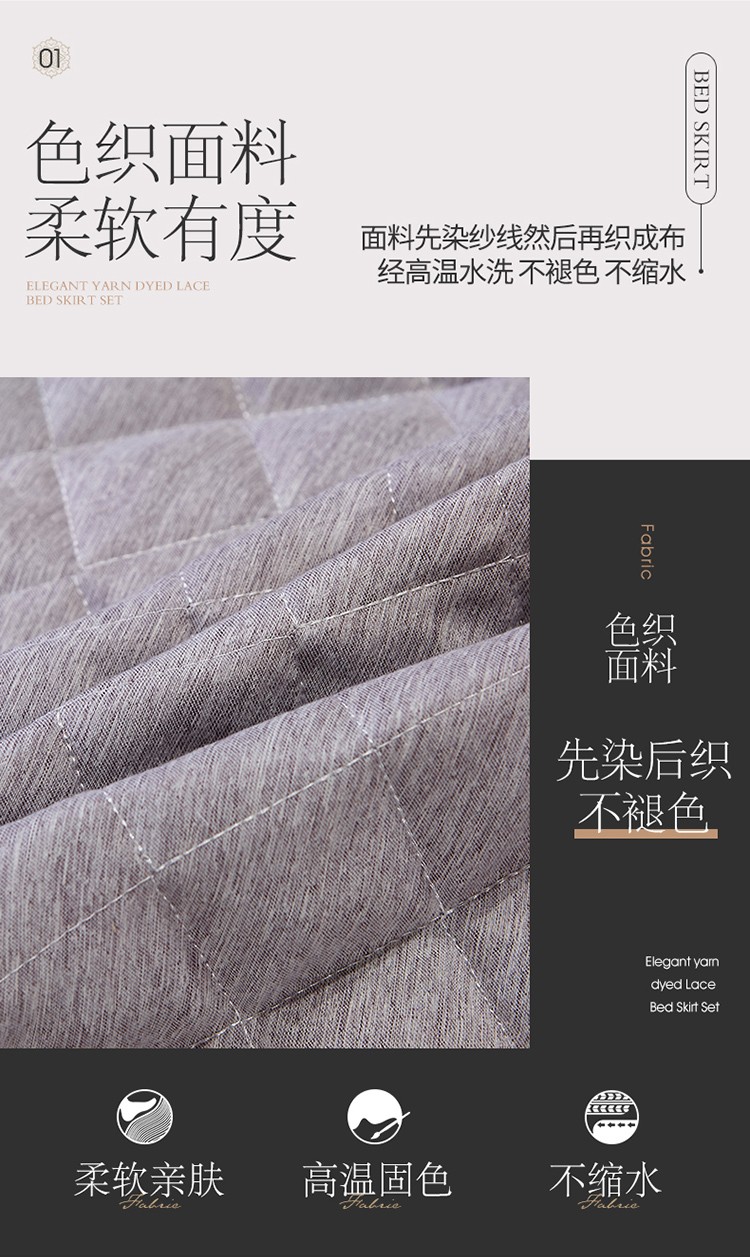 (总)网红馆(ck家纺) 2026新款色织蕾丝边床裙款床笠,宝石蓝,黛绿色,浪漫紫,奶茶色,石青,香妃粉,烟熏灰