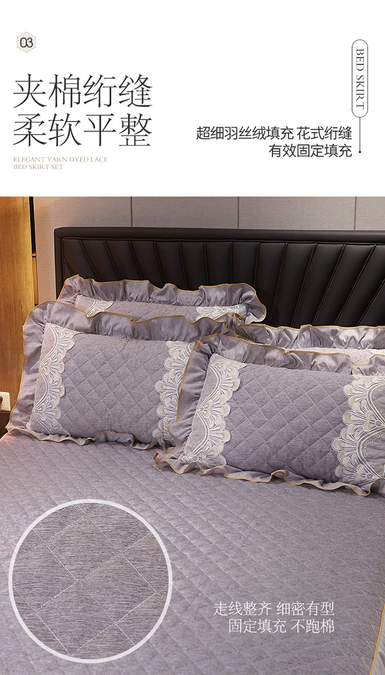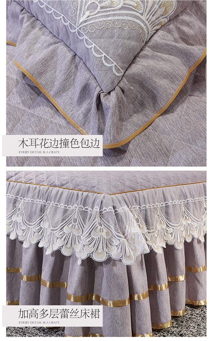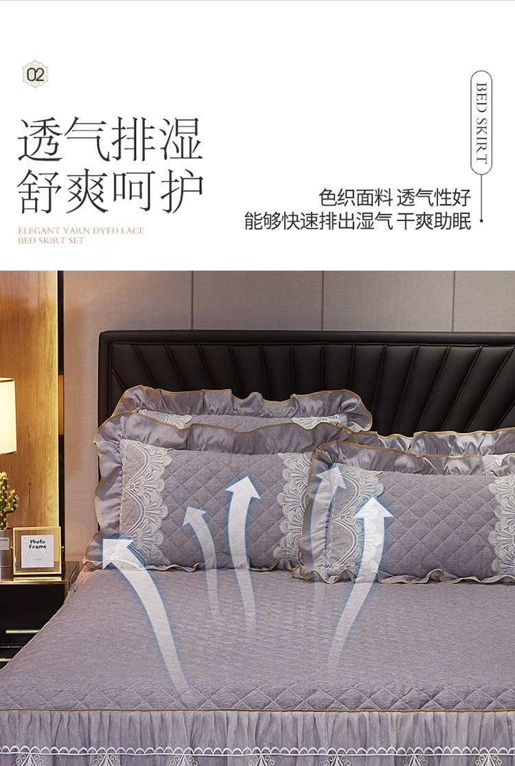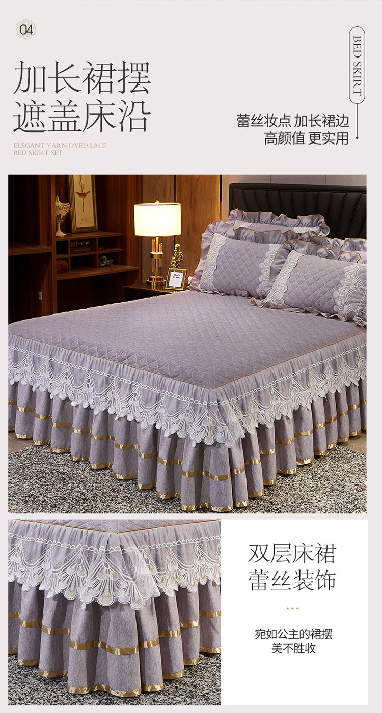 (总)网红馆(ck家纺) 2026新款色织蕾丝边床裙款床笠,宝石蓝,黛绿色,浪漫紫,奶茶色,石青,香妃粉,烟熏灰
