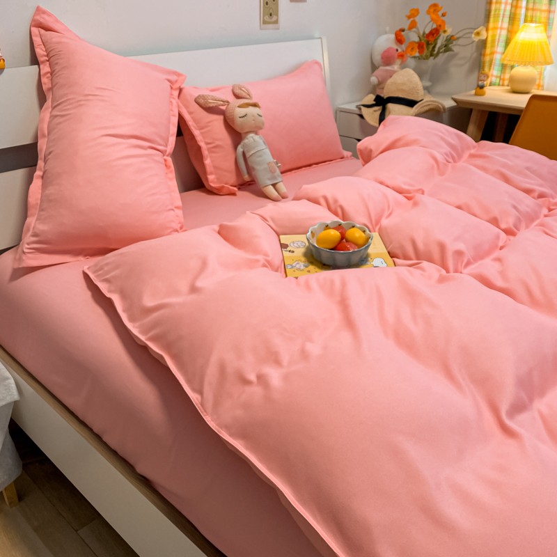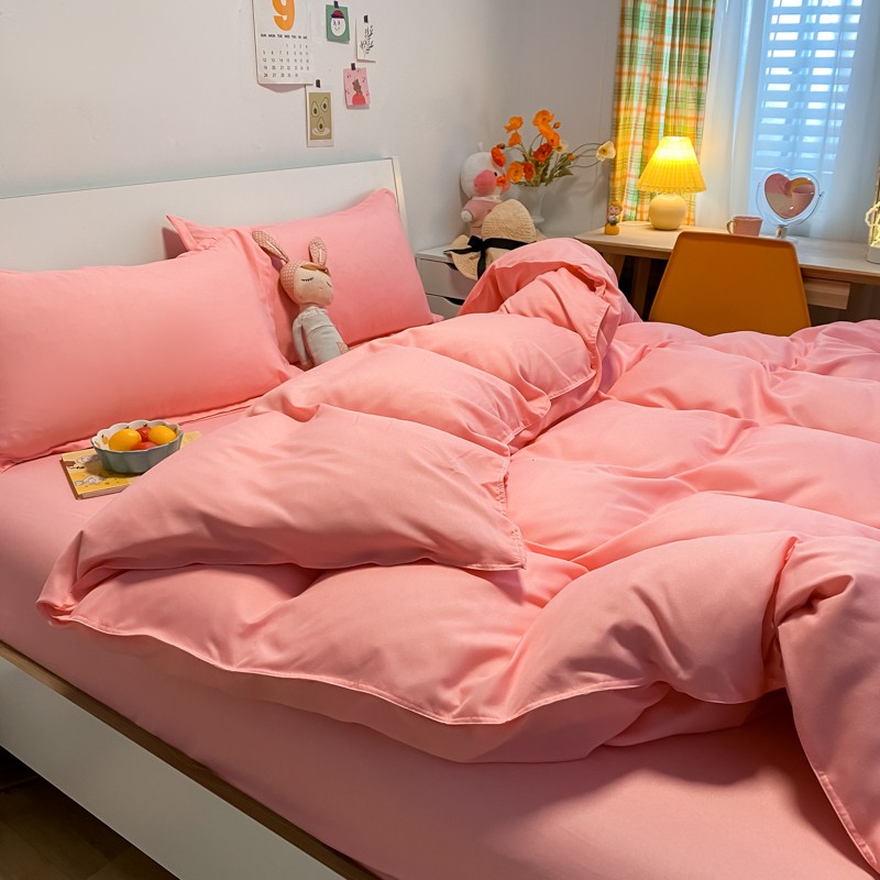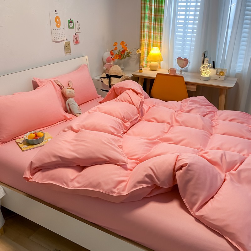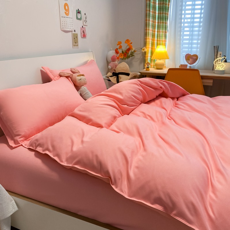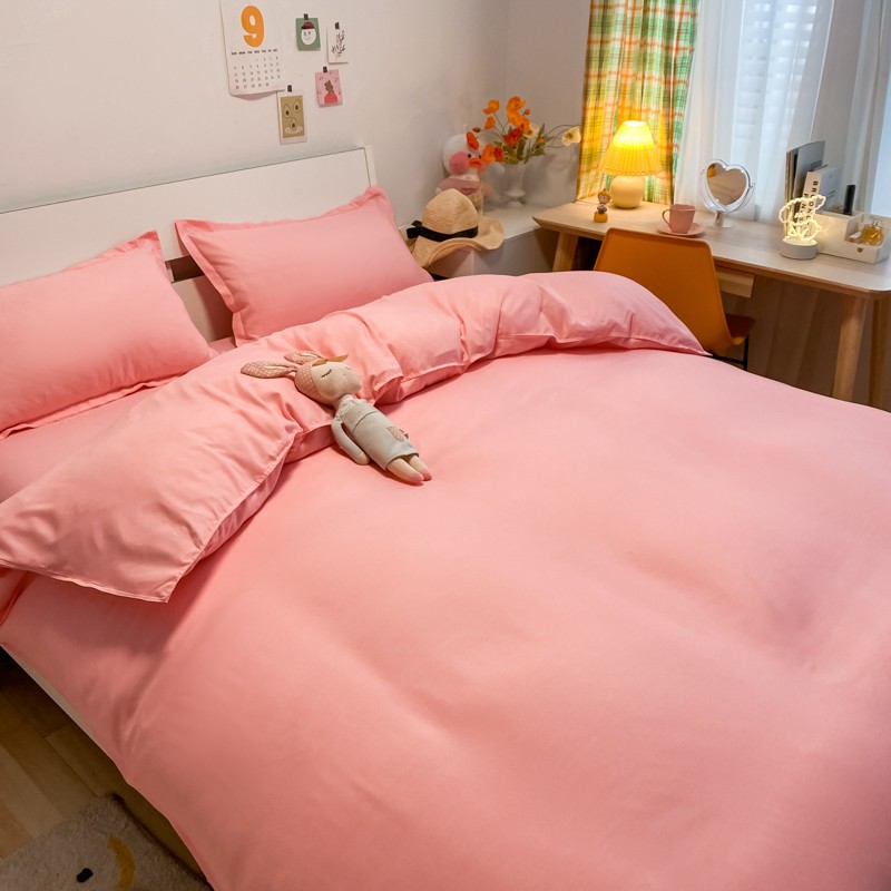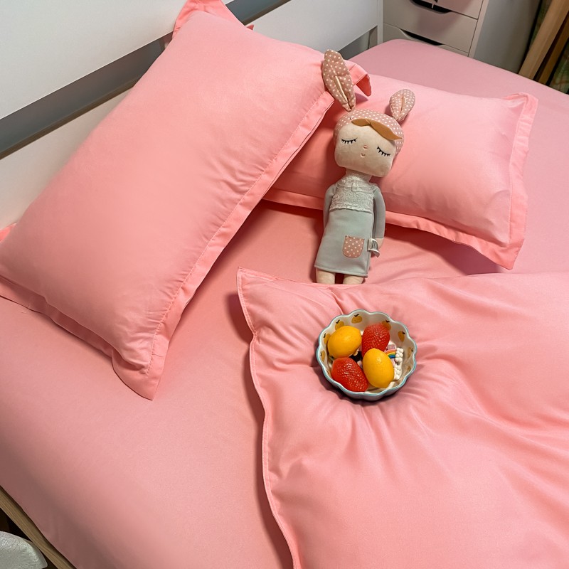 贝拉梦2021新款美棉纯色系列四件套-亚兰粉