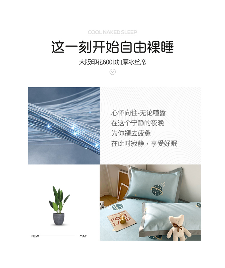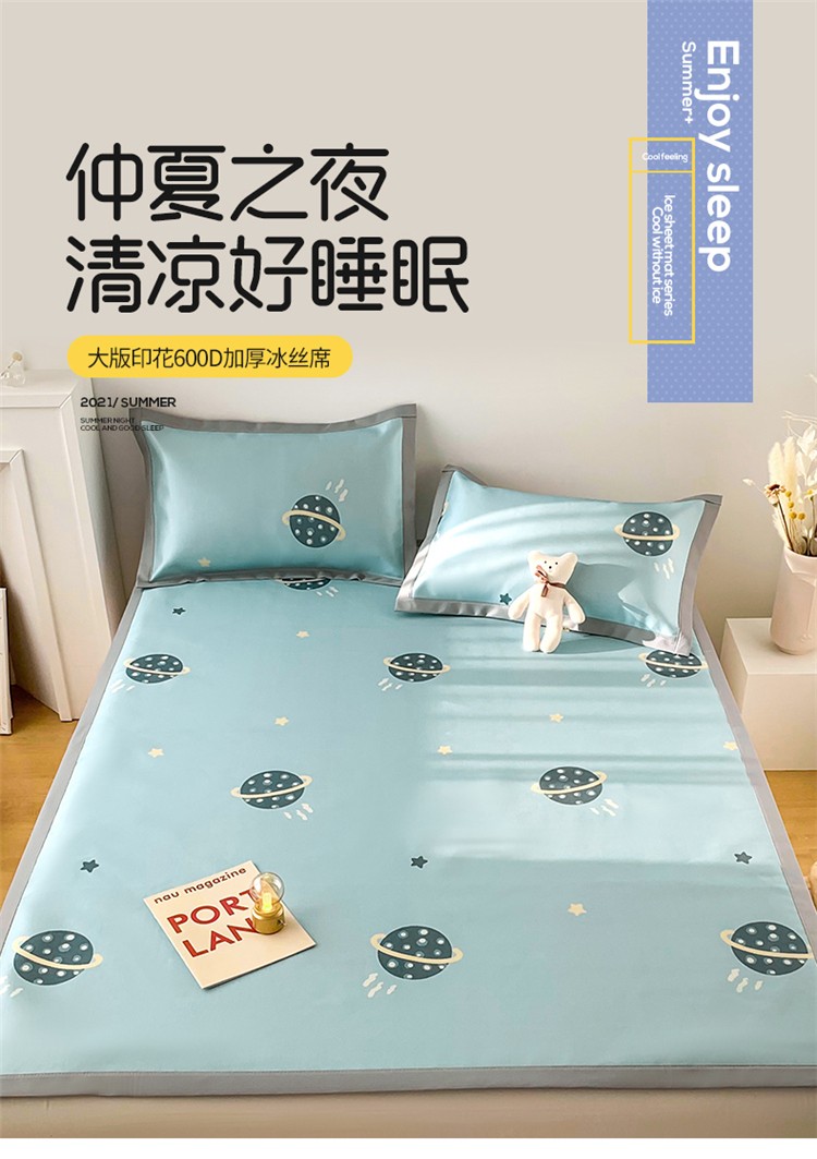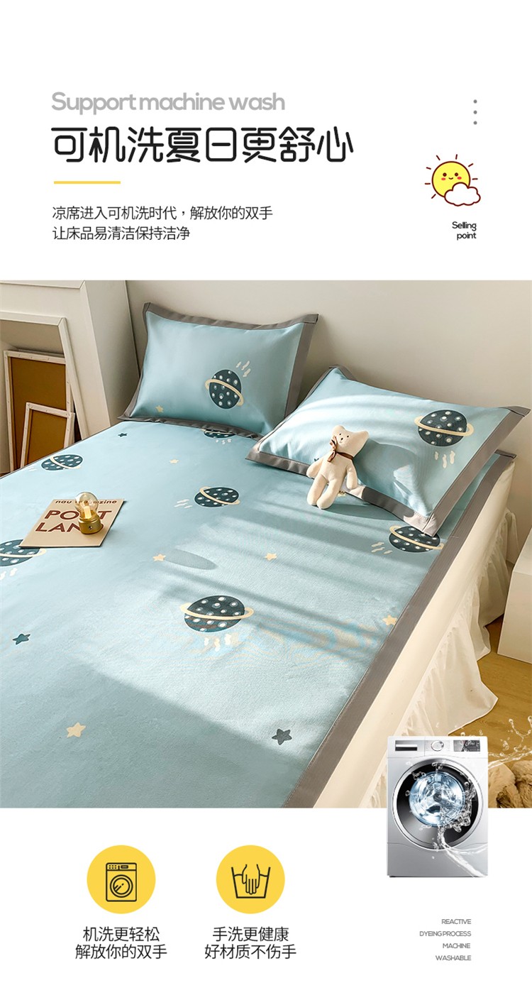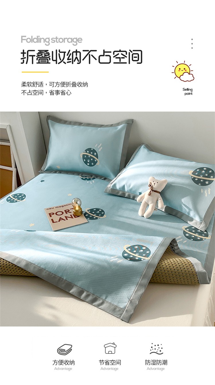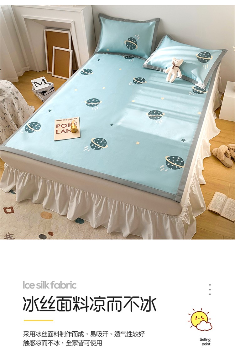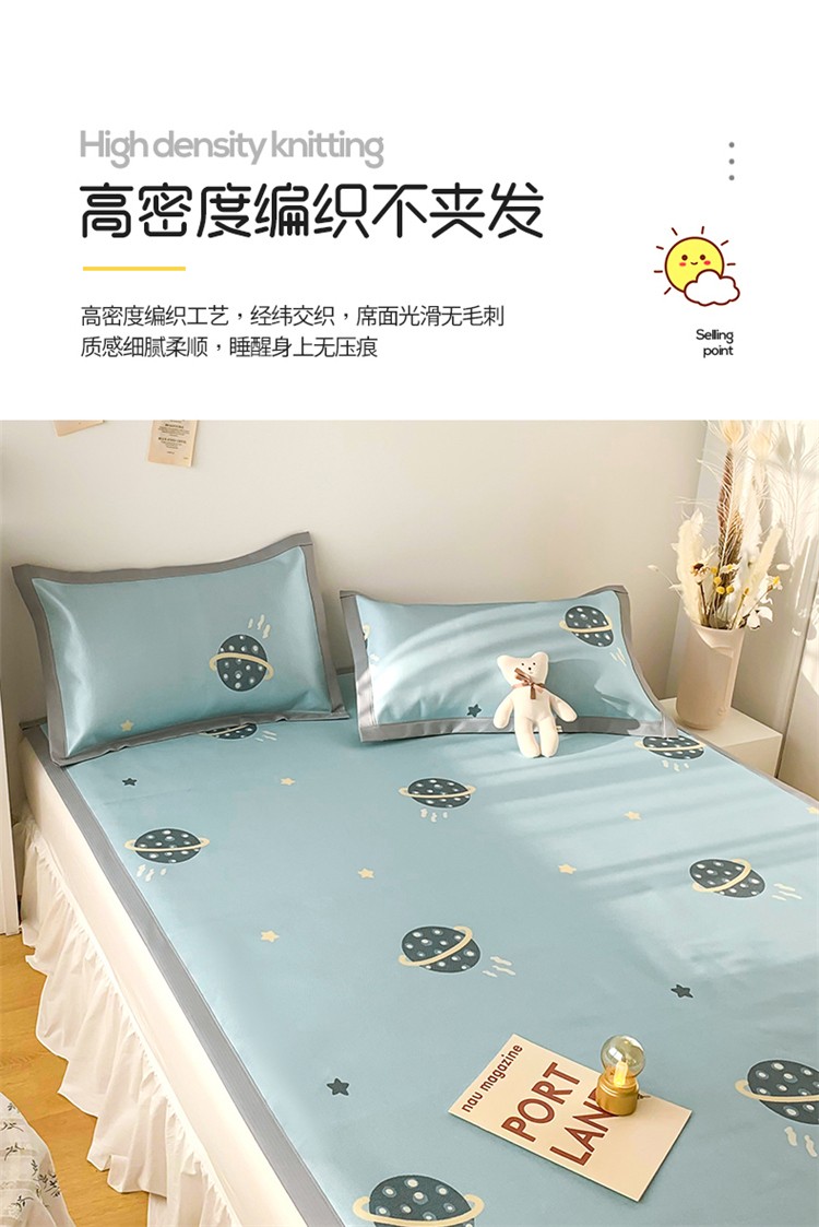 商品名称:懒猫 2021新款宽边圆网冰丝凉席三件套 探索星球