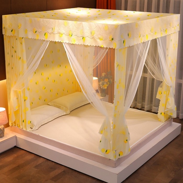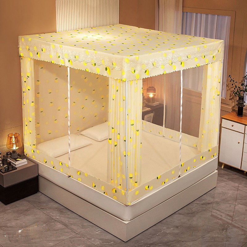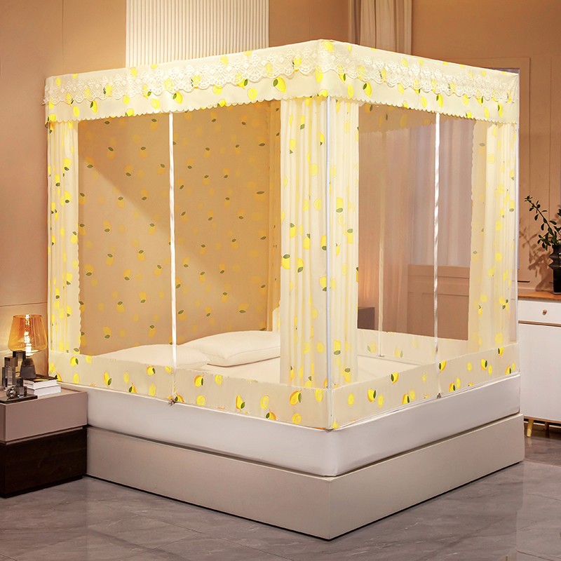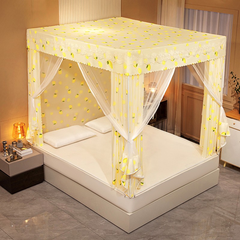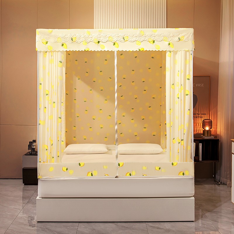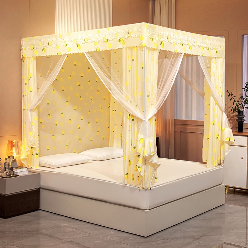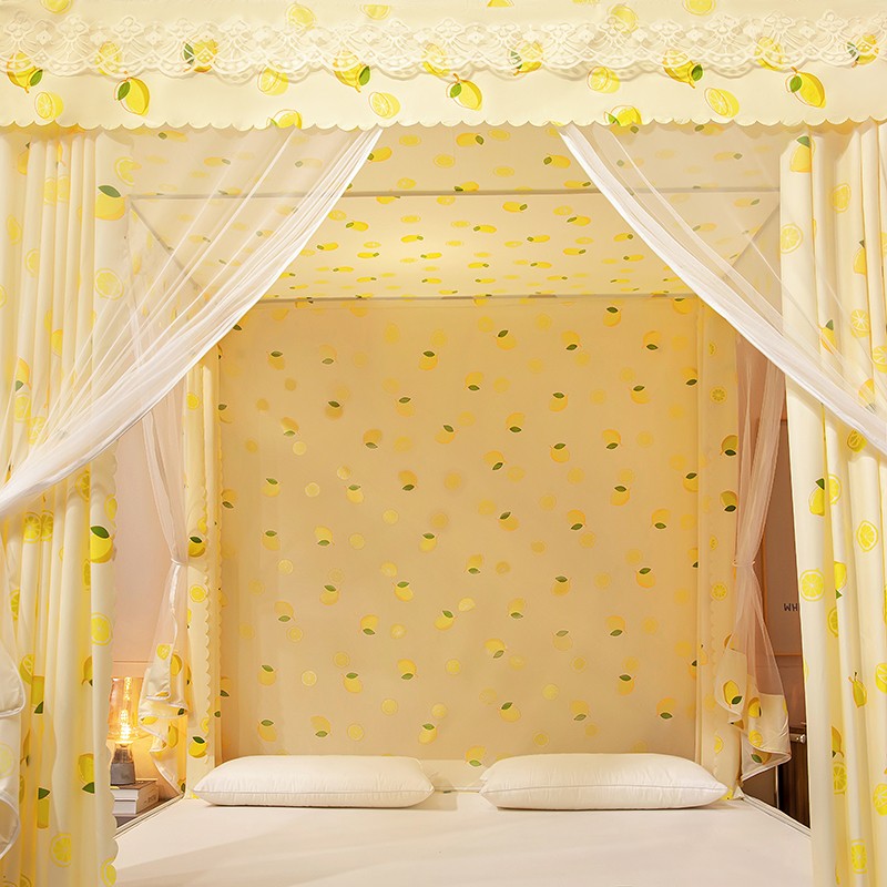 千逸虹 2024新款坐床全底纱 遮光蚊帐 柠檬黄